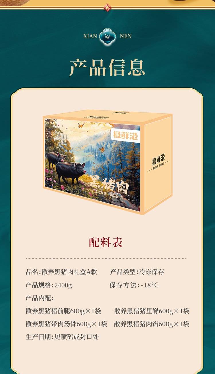 极鲜港散养黑猪肉礼盒A款468型【2400g】