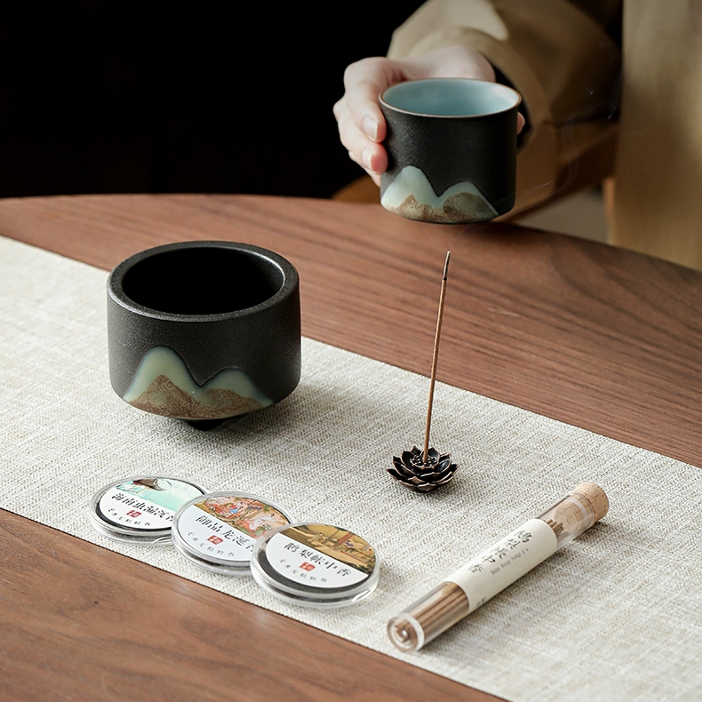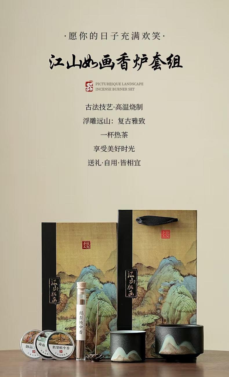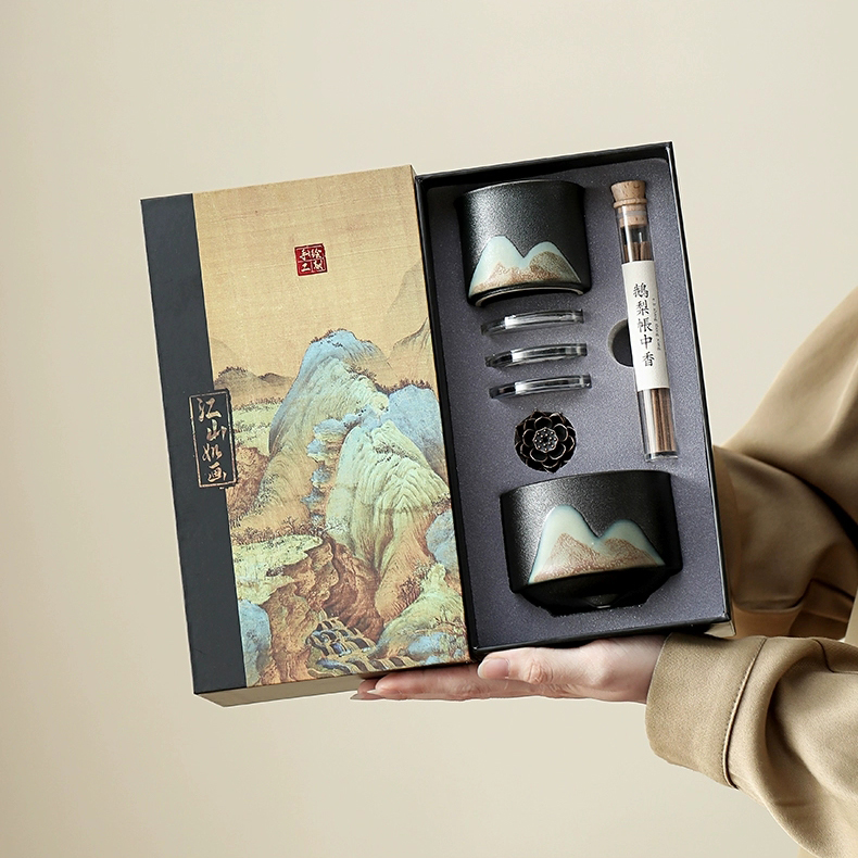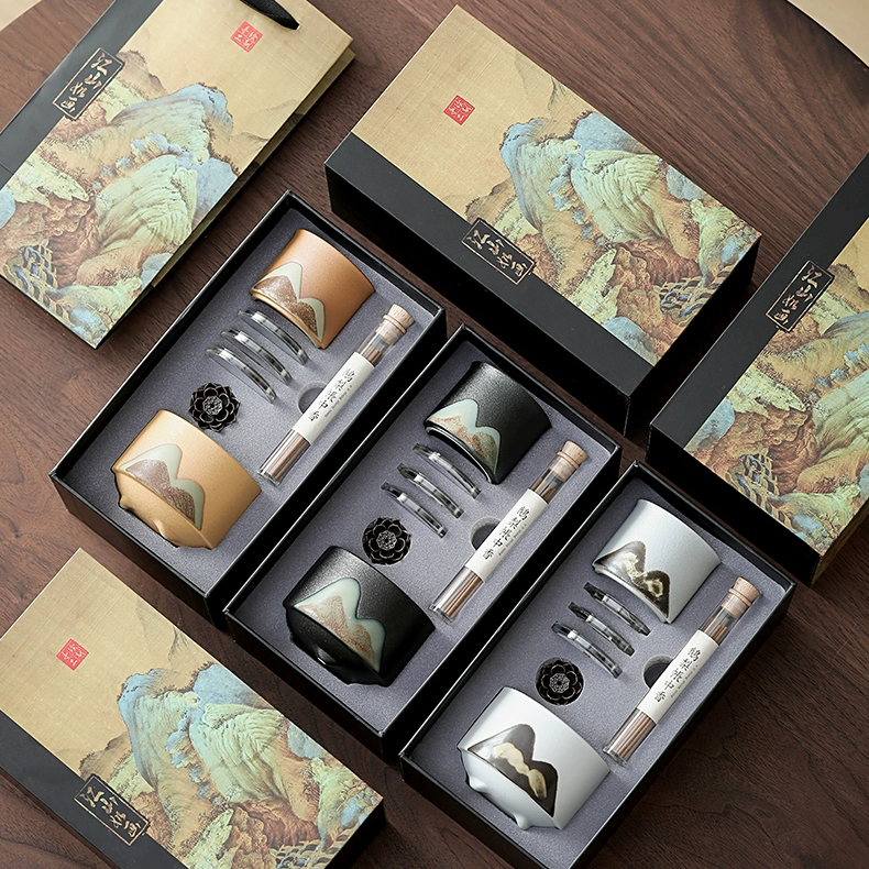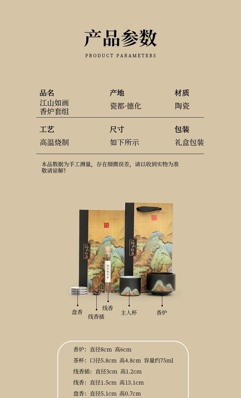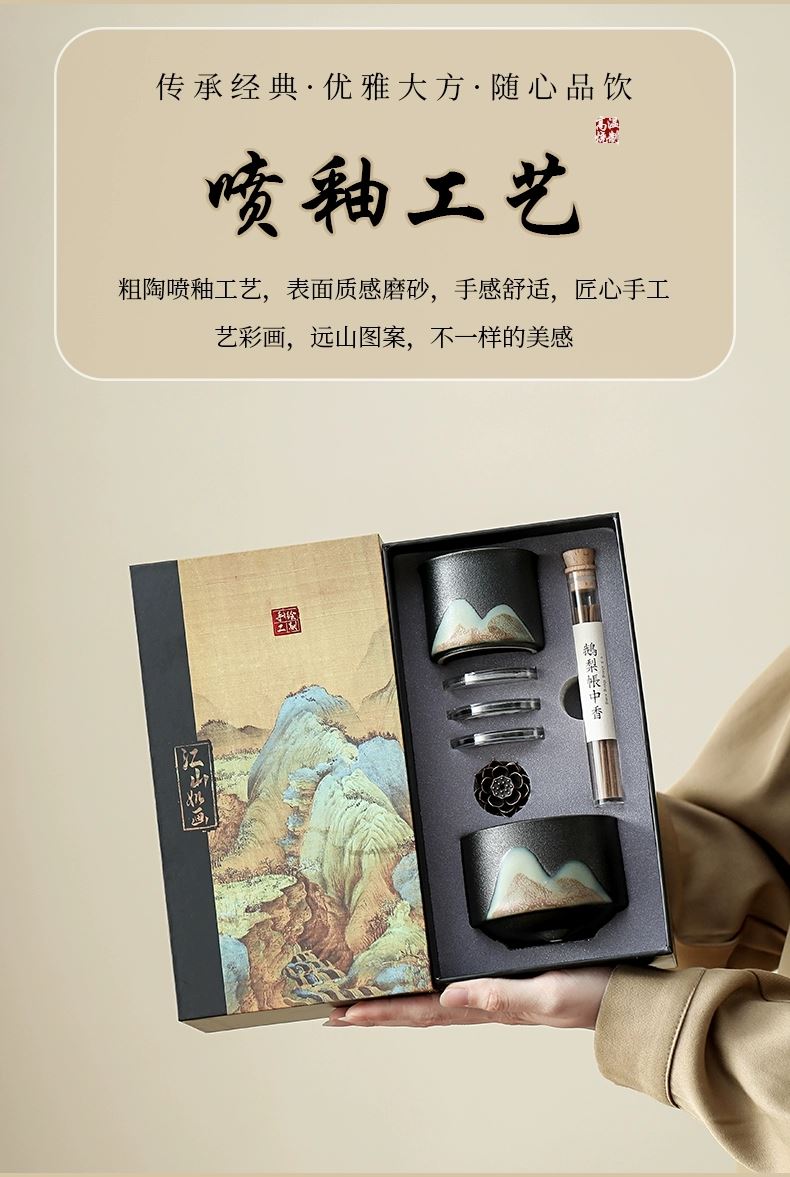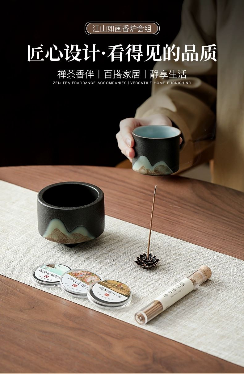 尾桥下窑江山如画香炉主人杯小套装茶事香道套装年会伴手礼
