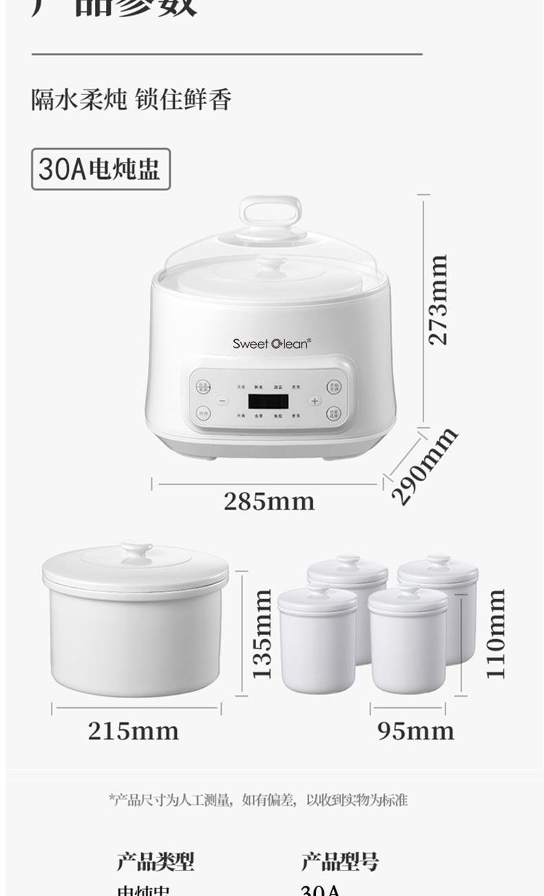 • 思薇科林多功能隔水电炖锅煲汤锅隔水炖锅电炖盅电蒸锅30A