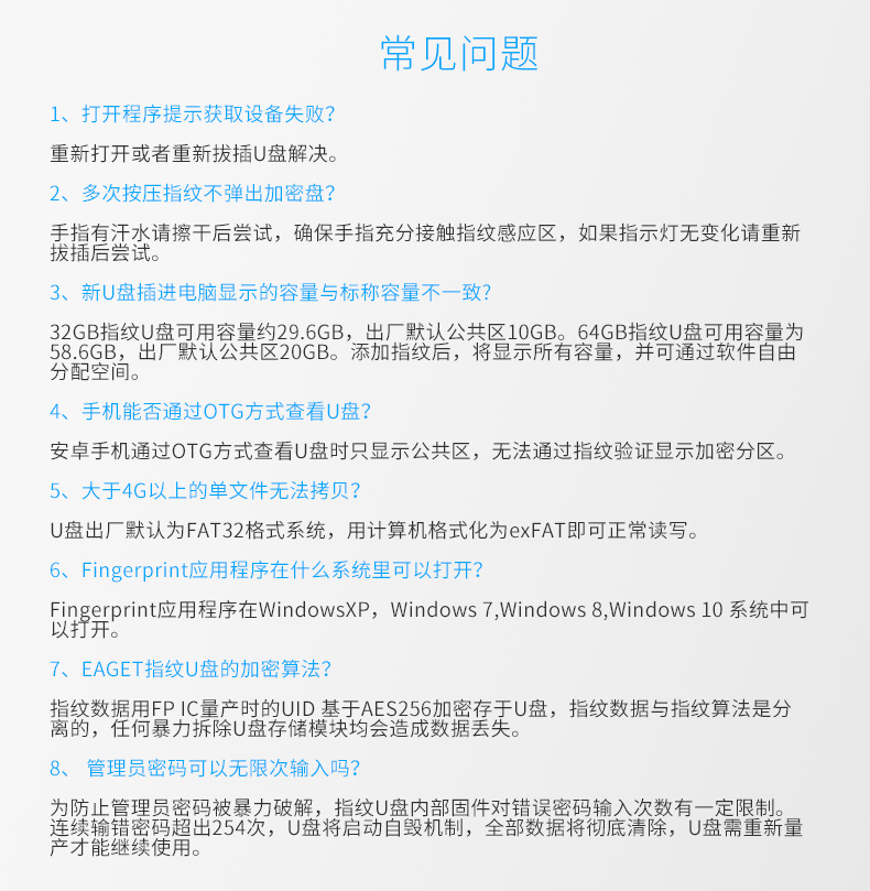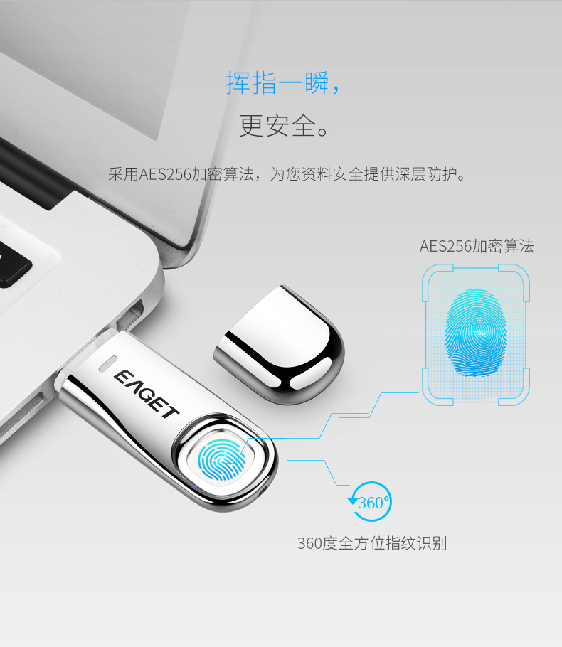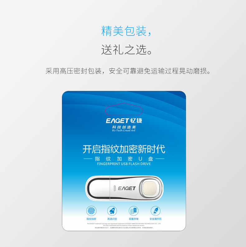 (EAGET)忆捷FU60指纹加密U盘防泄密全盘加密32GB