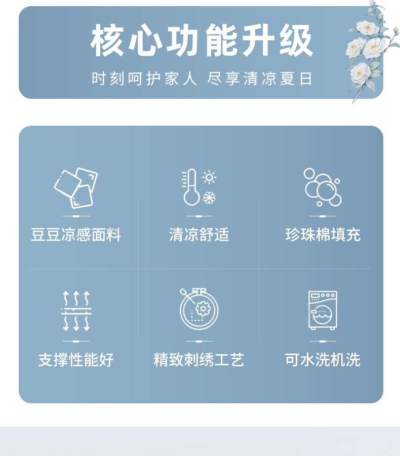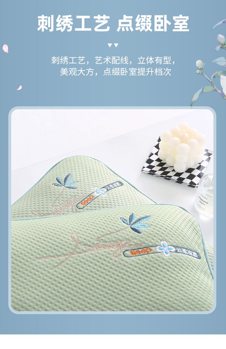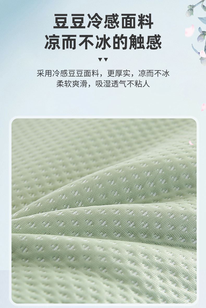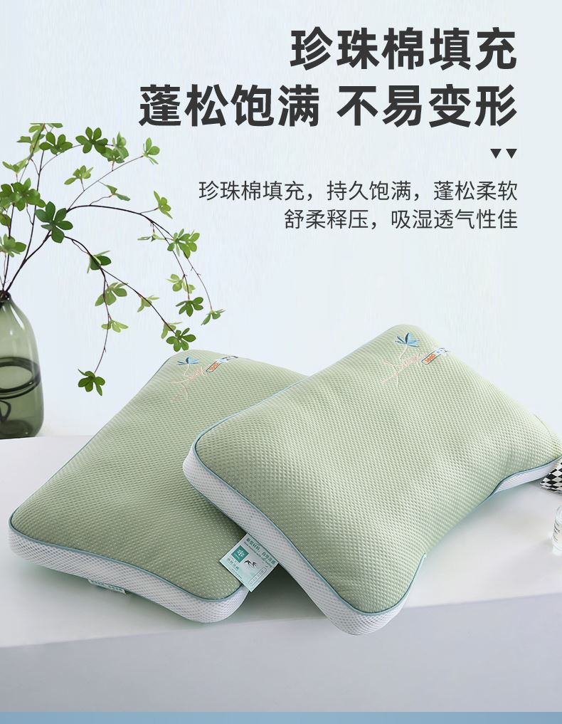 规格:35*55cm单枕套(不含枕芯) 面料:豆豆冷感面料/聚酯纤维 填充:珍珠棉 创新豆豆凉感面料,接触瞬间体感降温,凉感清爽不刺骨,告别夏日闷热,整夜舒适好眠。珍珠棉填充,支撑性能好,填充优质珍珠棉,蓬松度高、回弹性好,能够提供均匀支撑,有效缓解颈椎压力,适合各种睡姿。精致刺绣工艺,颜值担当表面精致刺绣装饰,细节处彰显品质感,为卧室增添一抹可爱,让睡眠空间更具温馨氛围。