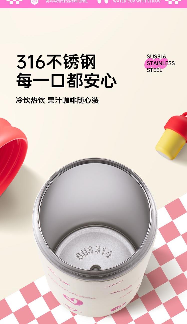产品容量:600mL 产品口径:6.7cm 产品颜色:活力红(RD)、深海蓝(BL) 杯体材质:内壁奥氏体型不锈钢06Cr17Ni12Mo2(食品接触用) 外壁奥氏体型不锈钢06Cr19Ni10(食品接触用) 塑 料 件:pp(食品接触用) 密 封 圈:硅胶(食品接触用) 保温效果:44℃以上 6 小时(室温 20℃ ±5℃,95℃水满容量) 1、杯身内壁采用316不锈钢,外壁采用304不锈钢,健康环保; 2、内壁表面采用电解研磨处理技术,不生锈,不氧化,防止污垢产生,易清洗; 3、杯底硅胶防滑设计,稳固放置不易倒; 4、杯身采用烤漆工艺,防刮,耐磨不掉漆,使用时间长; 5、采用吸管设计,盖帽也可以当装饰物,趣玩生活; 6、采用硅胶提手设计,轻松提,不勒手; 7、杯体表面采用3D打印工艺,潮流时尚,酷玩生活。