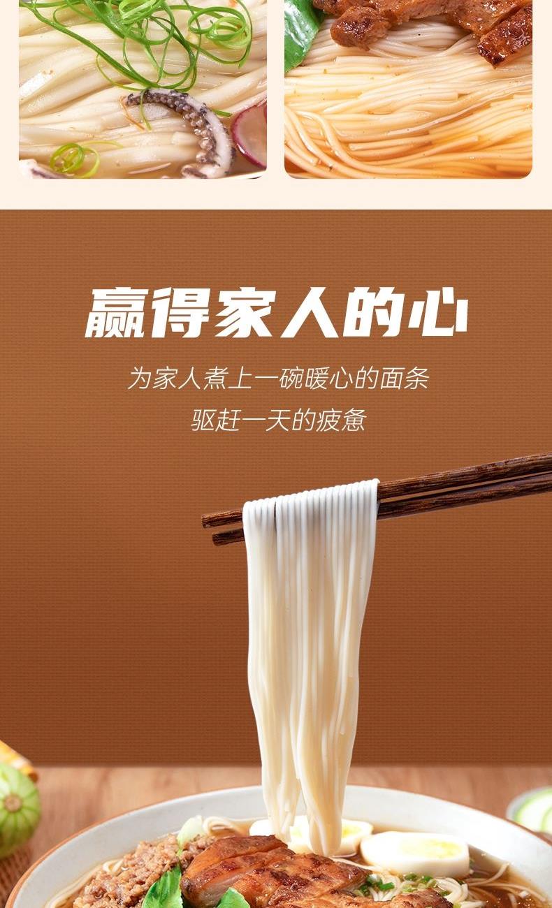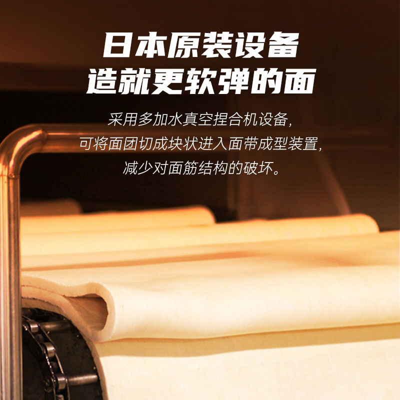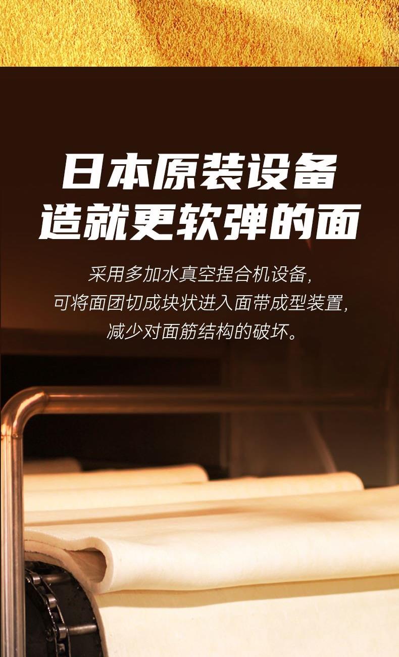 产品规格: 宽面 400g*2包 1、42%高加水:口感更爽滑软弹 2、360°真空揉:更筋道耐煮 3、35℃仿日晒:面条品质更稳定 4、细条形,面身圆润顺滑, 咀嚼口感软糯Q弹