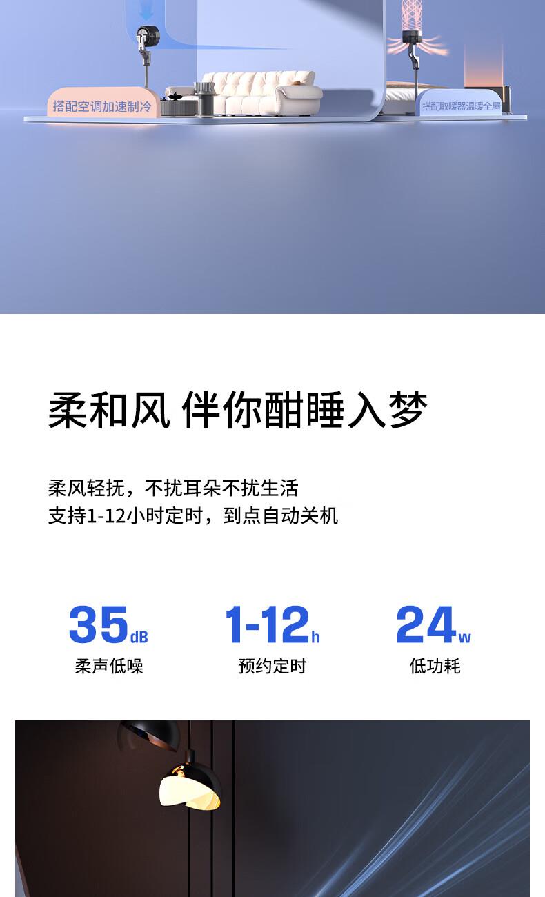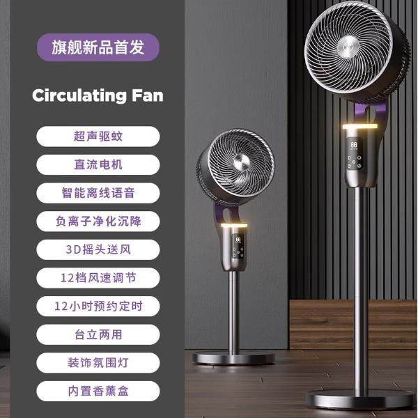 型号:WTH-XH052 功率:35W 控制方式:智慧语音/触屏/遥控/手机小程序 风速档位:12档 产品尺寸:300*300*1070mm 超声波智能驱蚊 12档风速调节 智能语音交互 负离子净化 直流电机