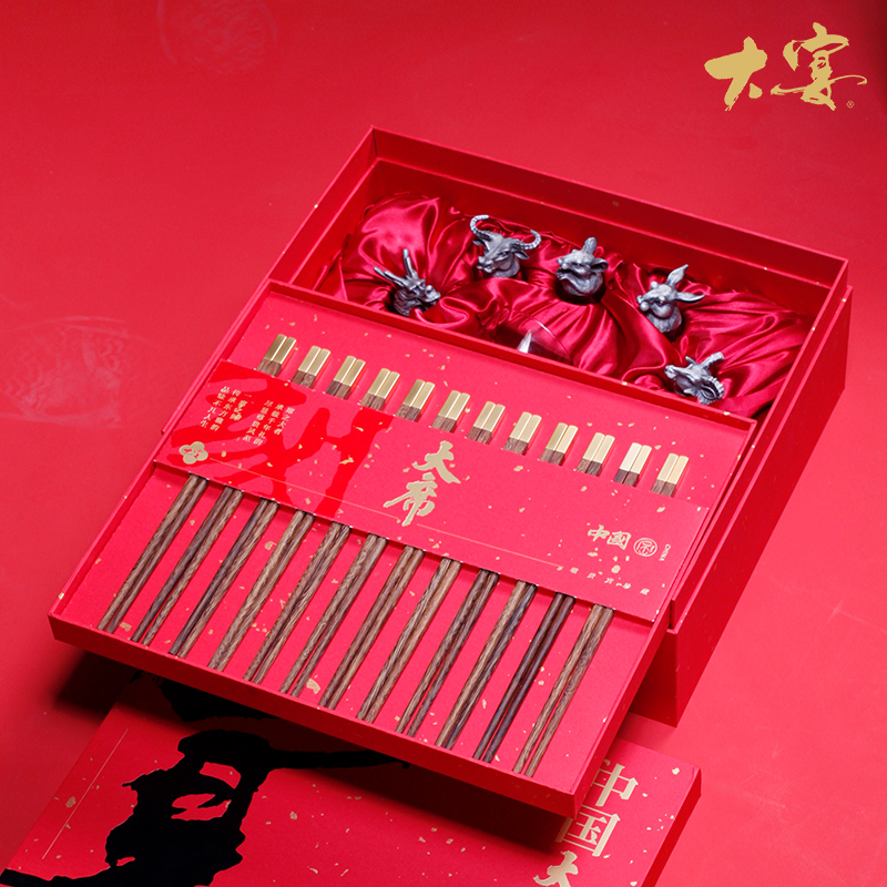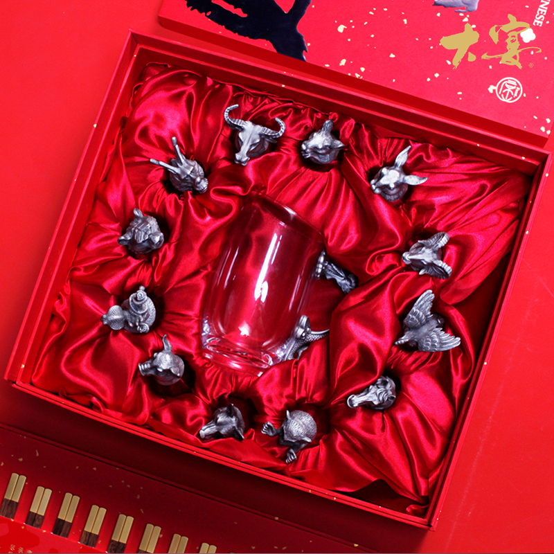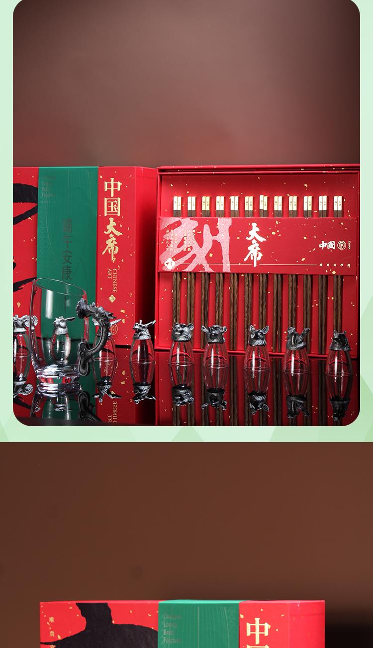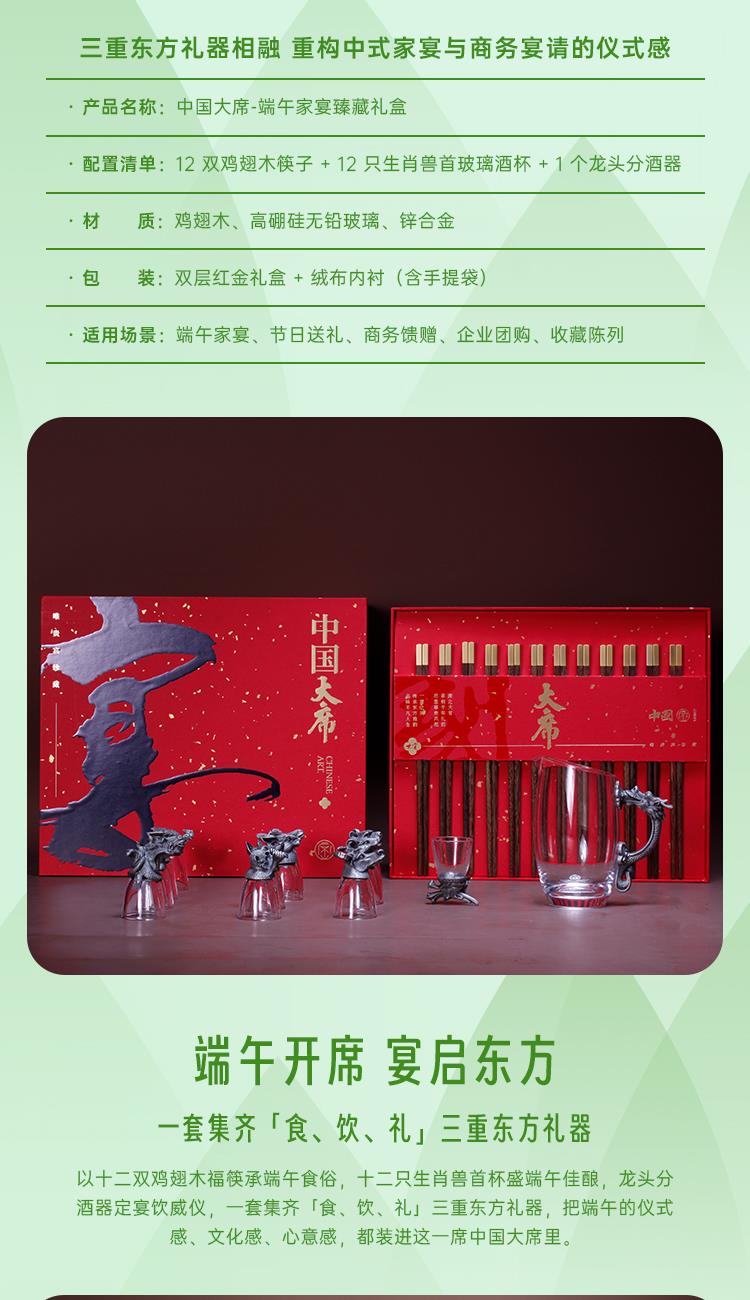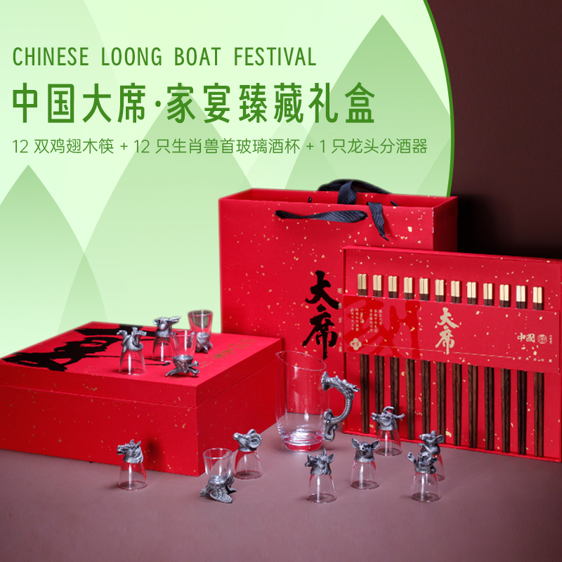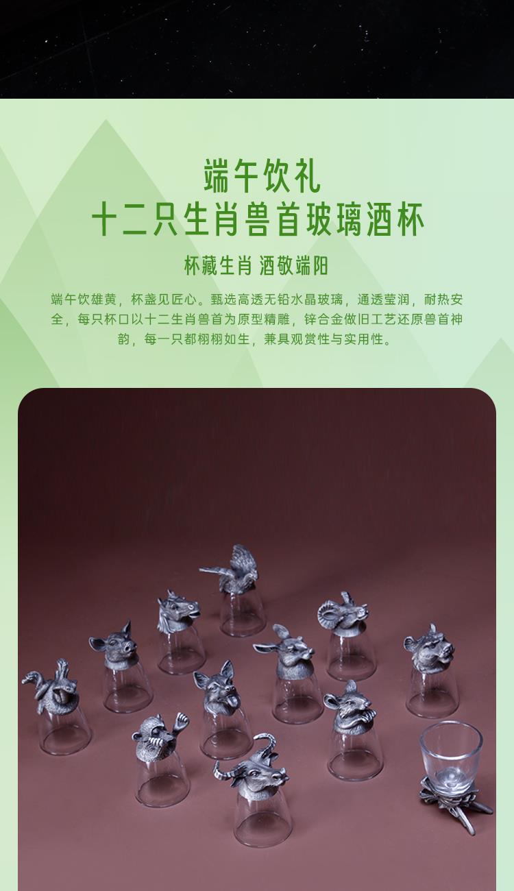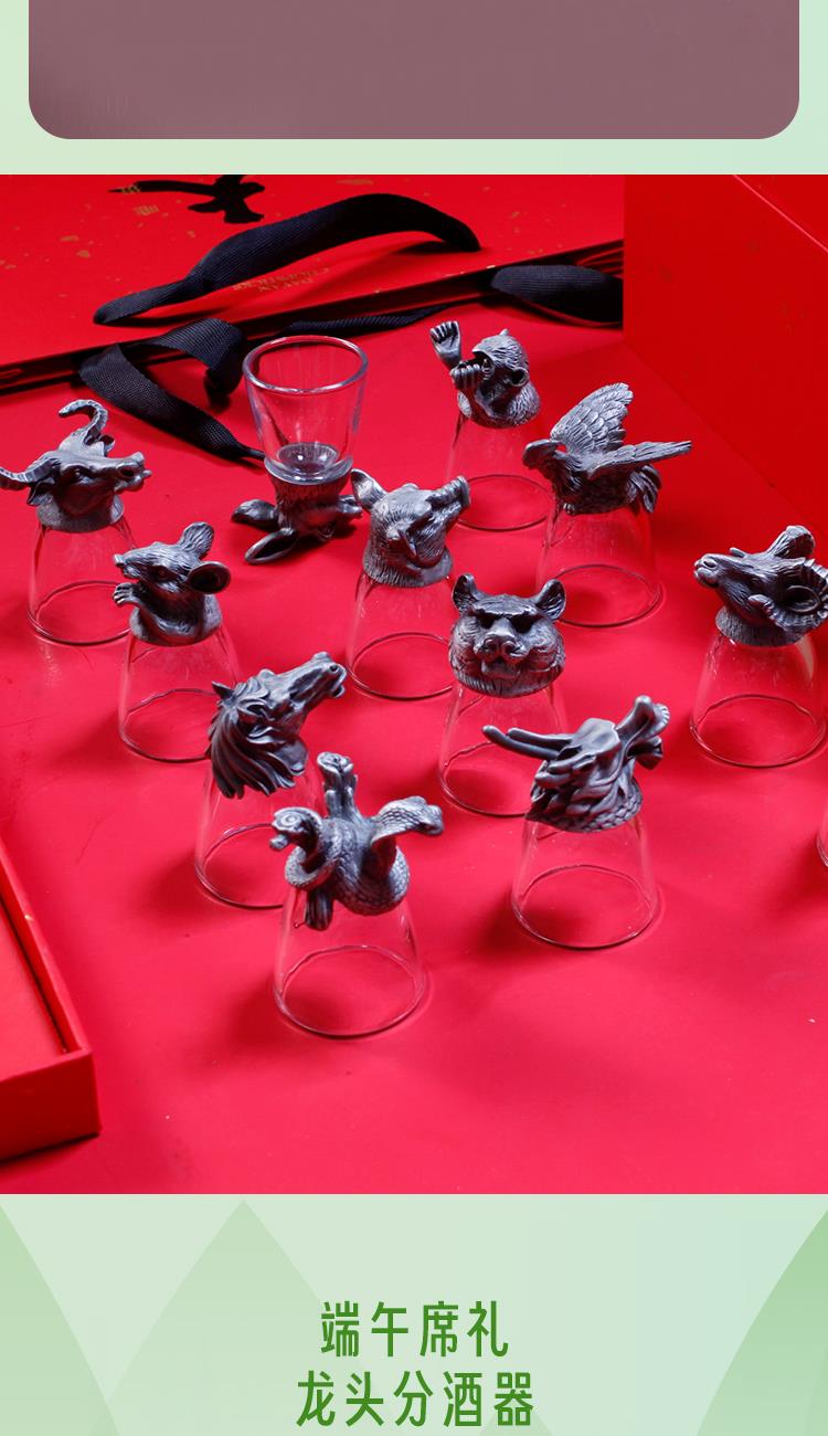 大宴端午家宴礼十二生肖兽首白酒杯套装鸡翅木筷龙头分酒器礼盒
