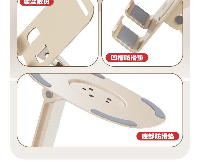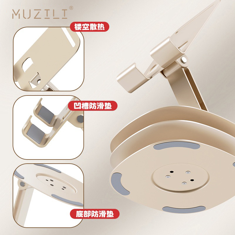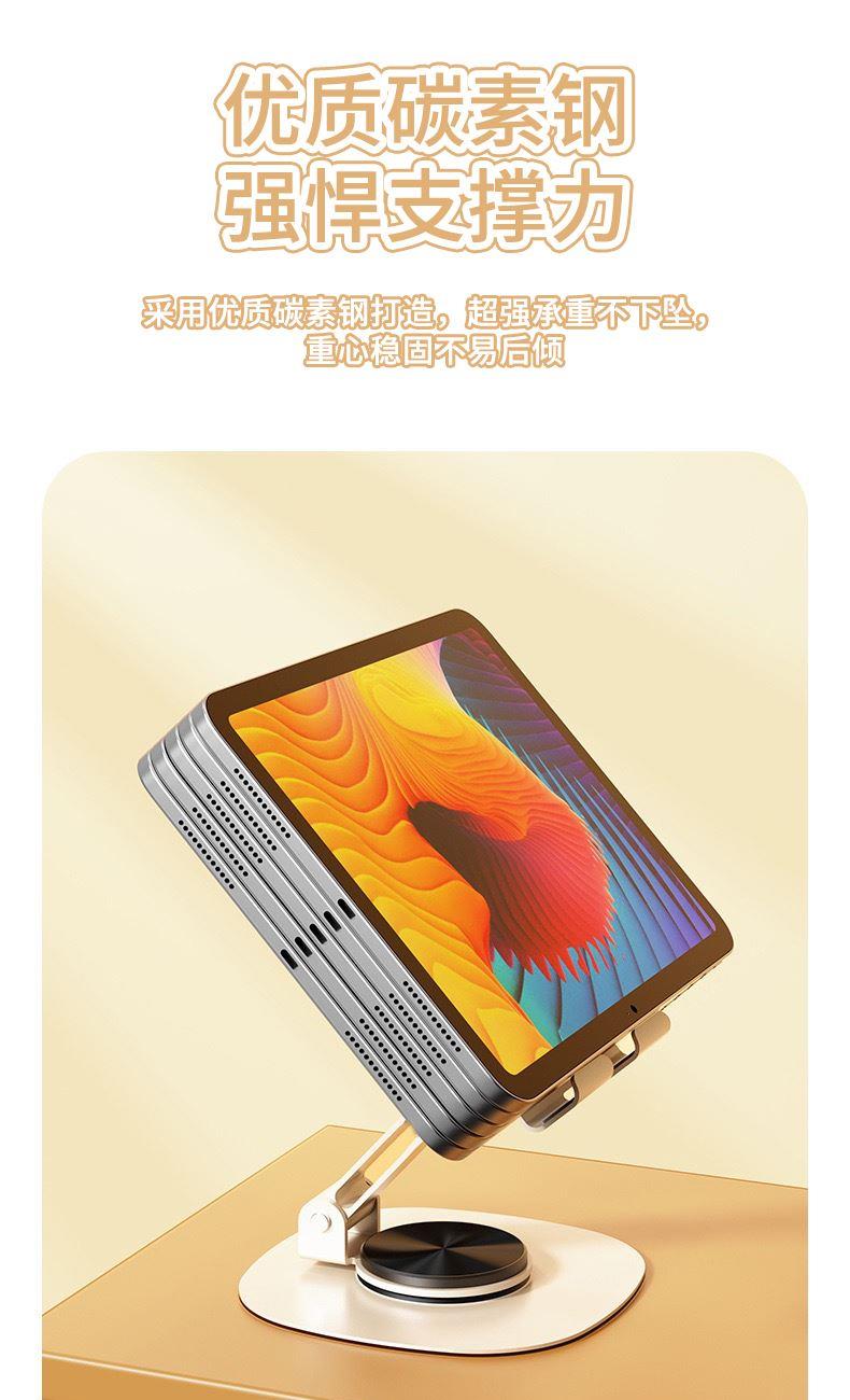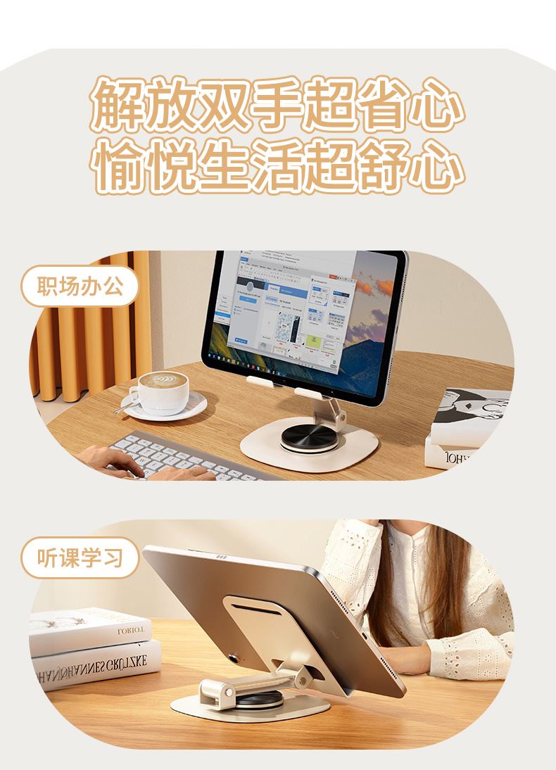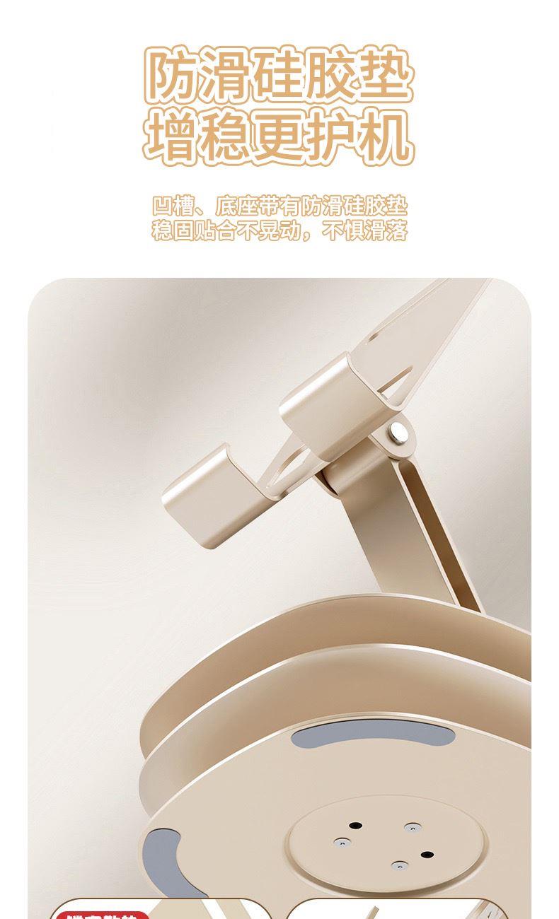 金属材料支架,增加防滑脚垫 360°可旋转底座 支撑力强劲,手机/平板通用 预留充电位,边用边充