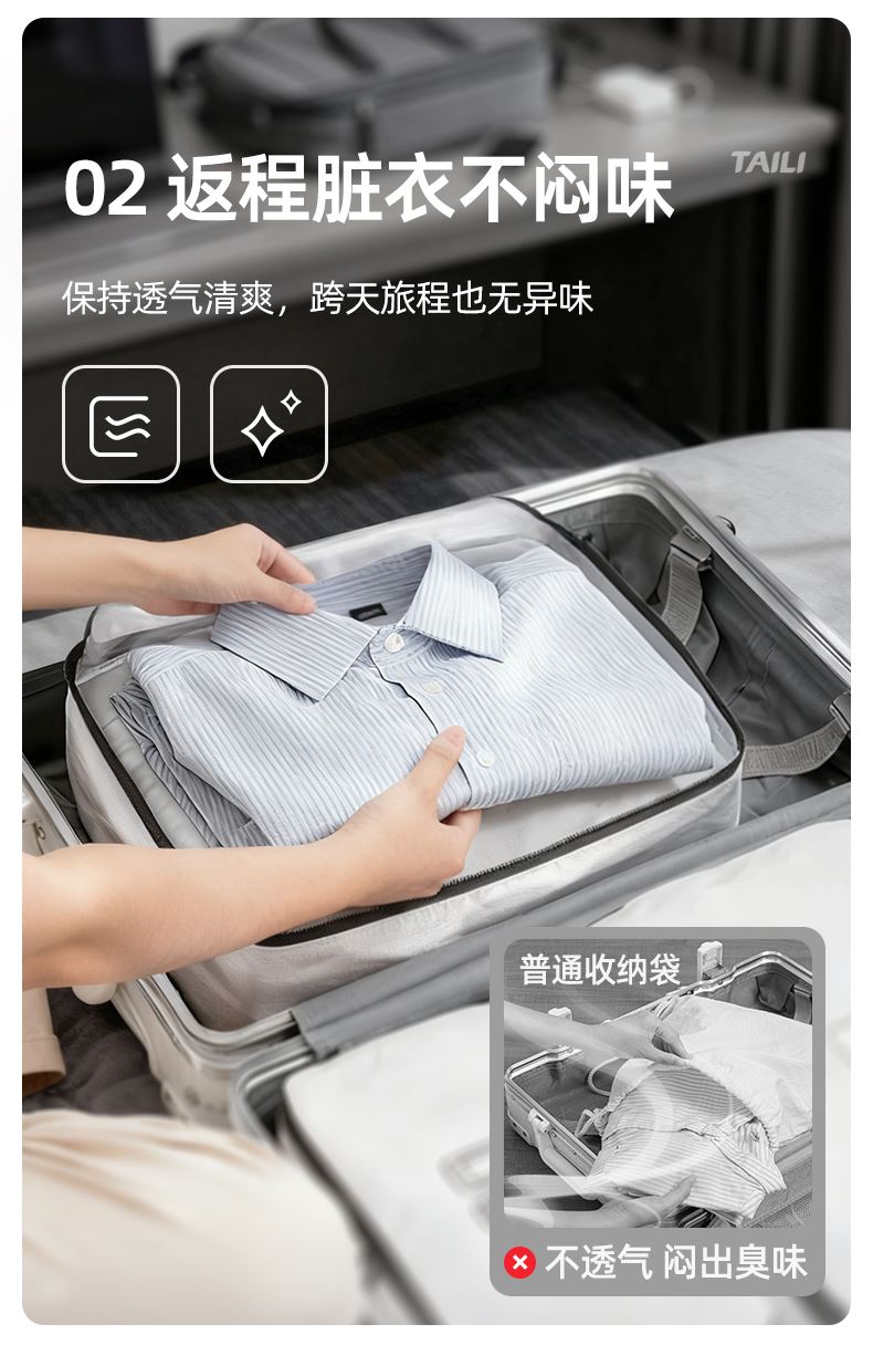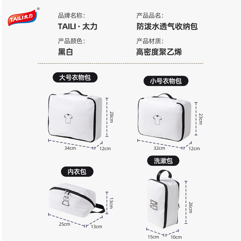 产品尺寸:26*15*10cm(1个) 材质:PE 适用对象:衣服,洗漱用品,玩具 类别:洗漱包 适用场景:旅行 图案:纯色 功能:便携,防水,收纳 产品描述:防水透气耐脏三合一