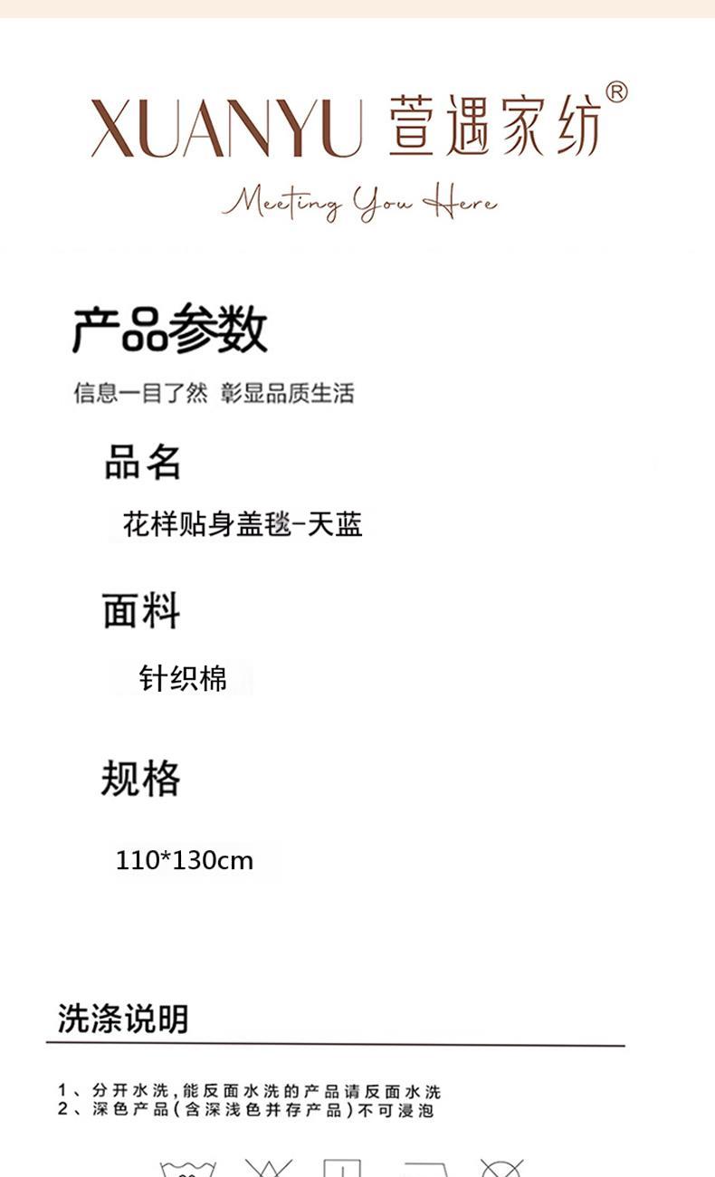 萱遇家纺花样贴身盖毯-天蓝Q-C7101