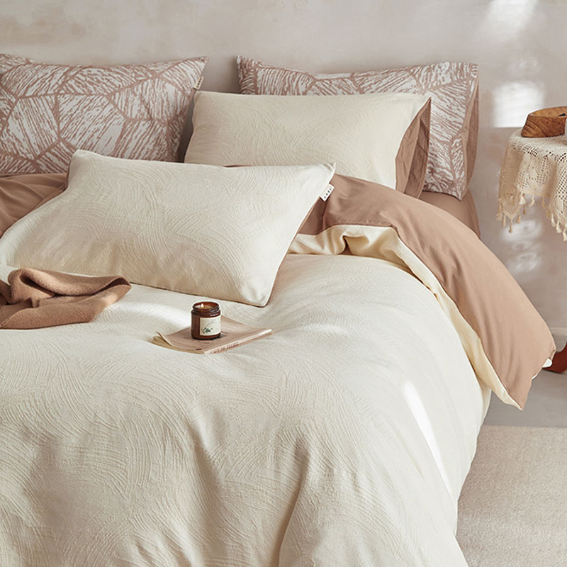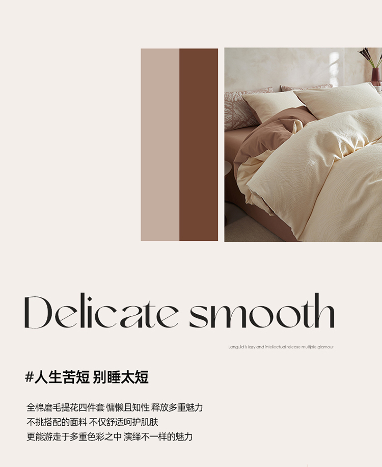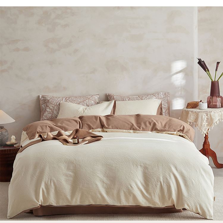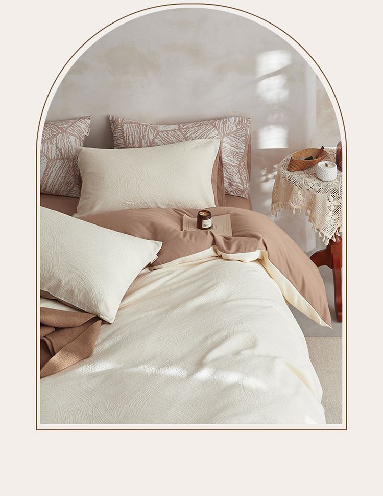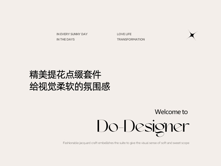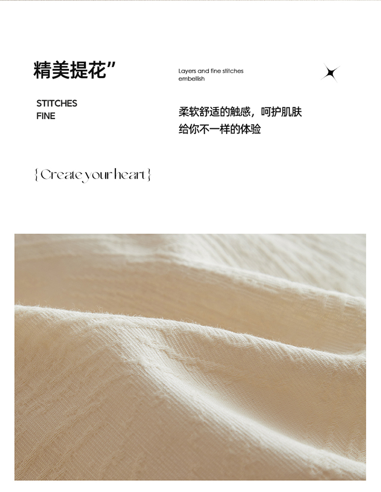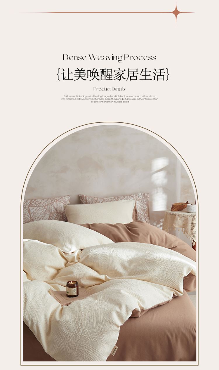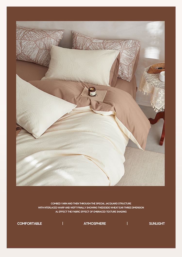 3.精致工艺 : 提花工艺,做工上内缝拷边,做工细致,四角绑带,更好的固定被芯;枕套采用口袋式设计风格,美观大气简约时尚;