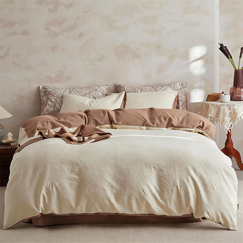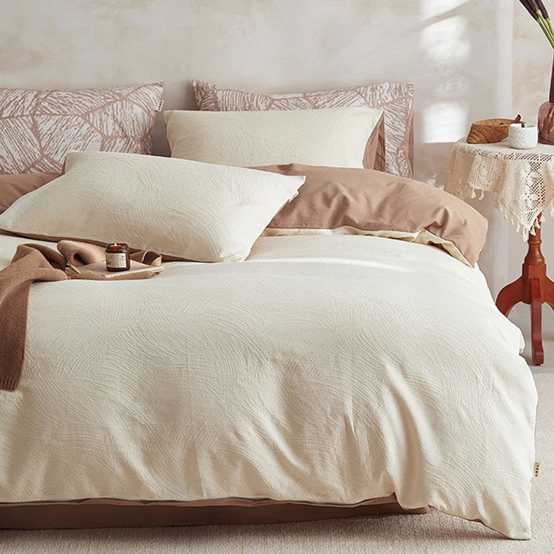 <赫兰希>全棉提花加厚磨毛四件套-彩绘米咖