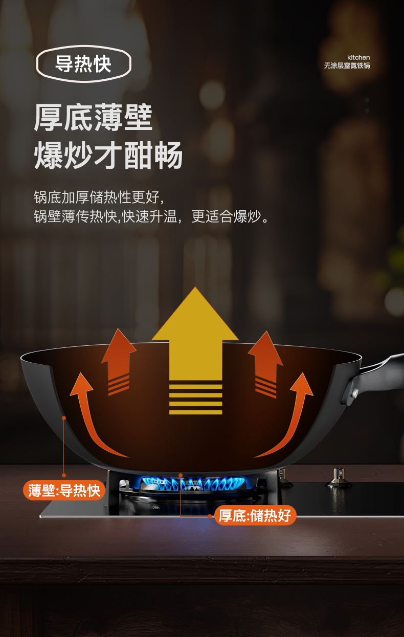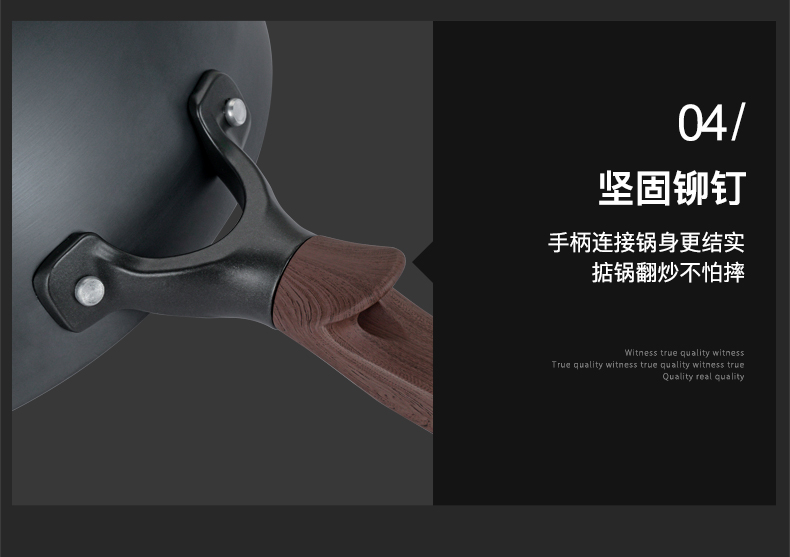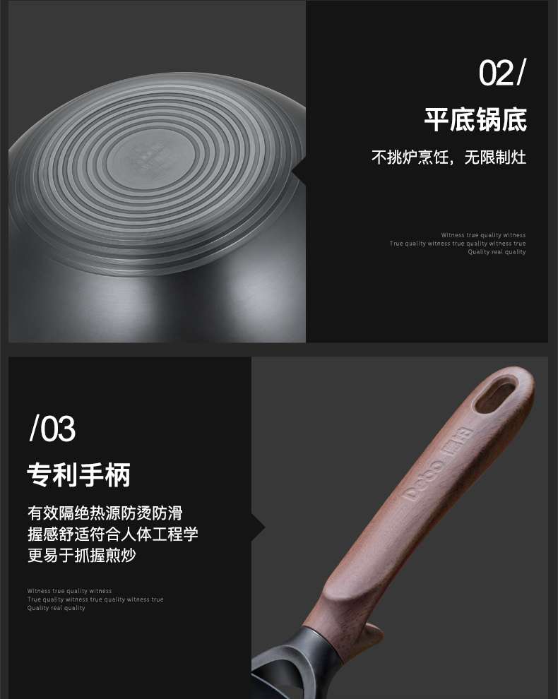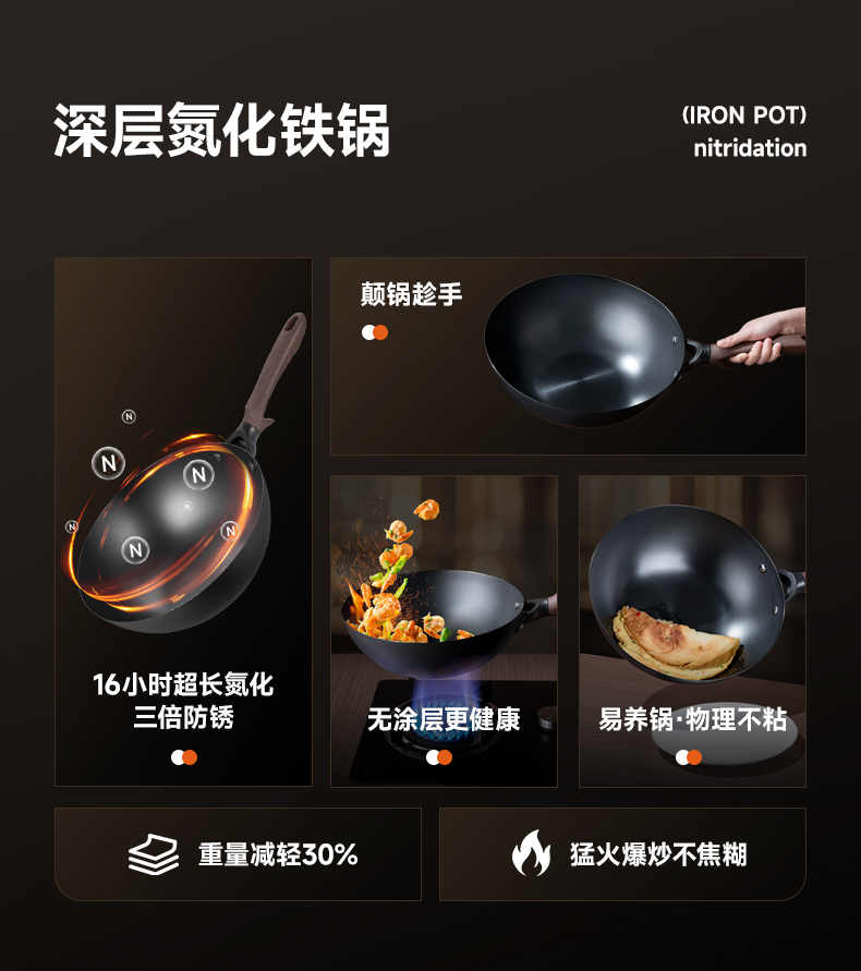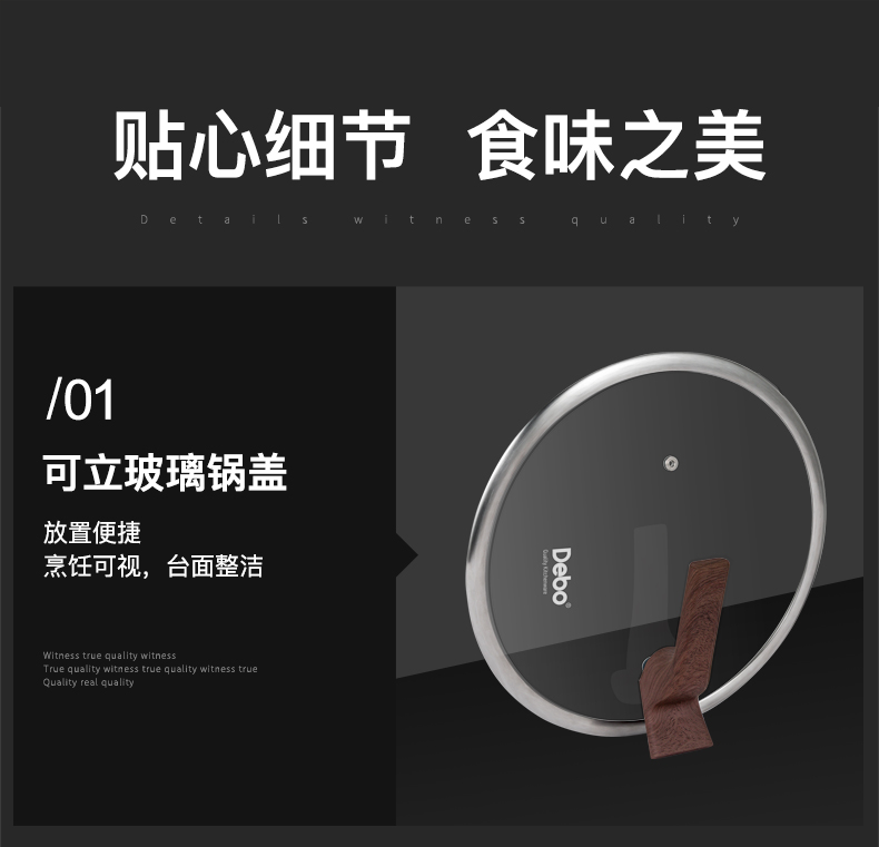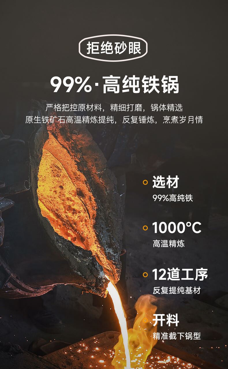 型号:DEP-984 口径:32cm 容量:5L 材质:精铁 包装尺寸:535*135*335mm 配置:锅身*1、玻璃盖*1 1. 采用深层液氮处理工艺,为锅身加上一层紧密的防锈保护屏障,增加耐磨抗腐蚀性; 2. 厚底薄壁,导热均匀,畅快爆炒,轻松翻炒一道菜; 3. 可立式锅盖,能稳稳立在台面,不占地,随手一放方便整洁; 4. 舒适握感手柄,贴合手感设计,握感饱满更舒服; 5. 精工制作,锅体极具质感,精致美观。