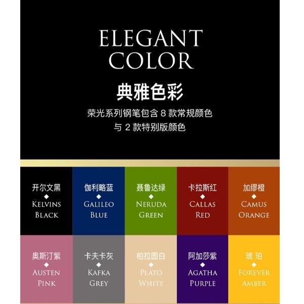 型号:荣光系列签字笔 类型:可替换芯宝珠笔 重量:墨水/宝珠笔25g/30g 颜色分类:开尔文黑/卡拉斯红/奥斯汀紫/加缪橙/伽利略蓝/卡夫卡灰/柏拉图白 书写粗细:0.6mm 整笔材质:铝铜 笔盖:卡扣嵌套设计 笔握:24mm中距笔握 套餐类型:官方标配 方式:鸿运笔芯笔记本礼盒装 适用场景:送礼书写 适用人群:文艺青年 笔杆材质:金属 笔身纹理:磨砂