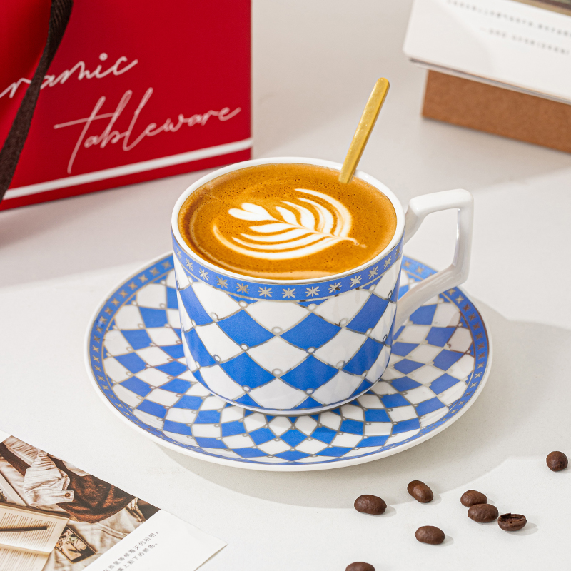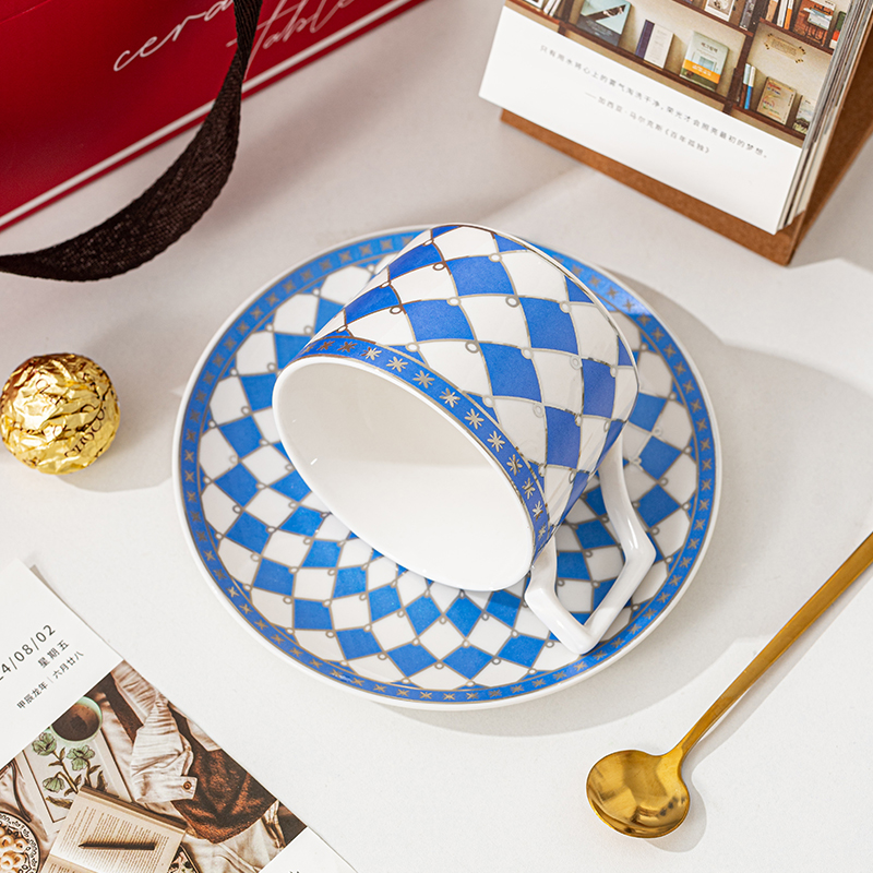 • 瑾明礼-银菱蓝-咖啡杯碟-1杯1碟1勺