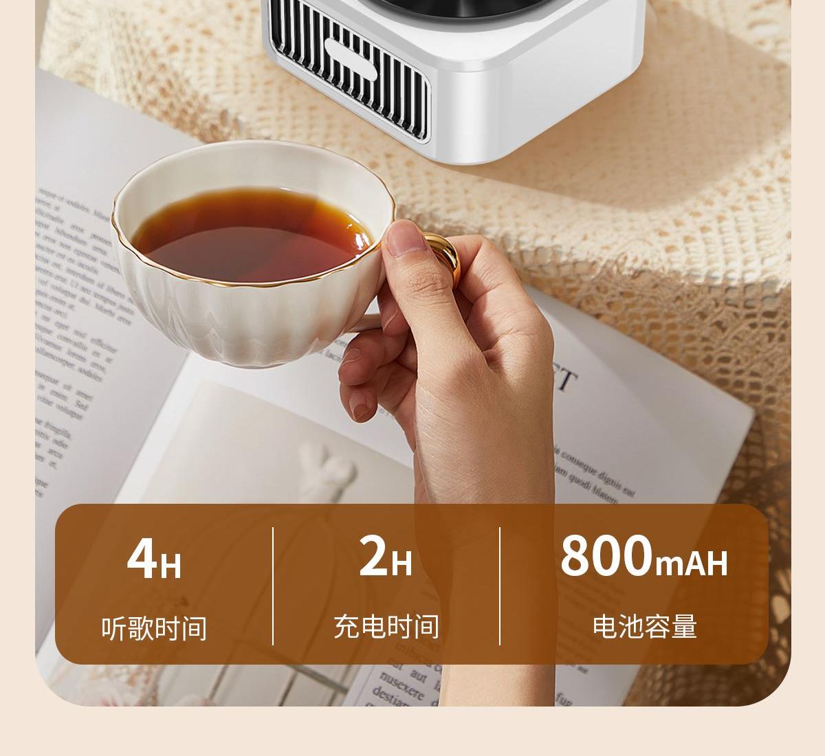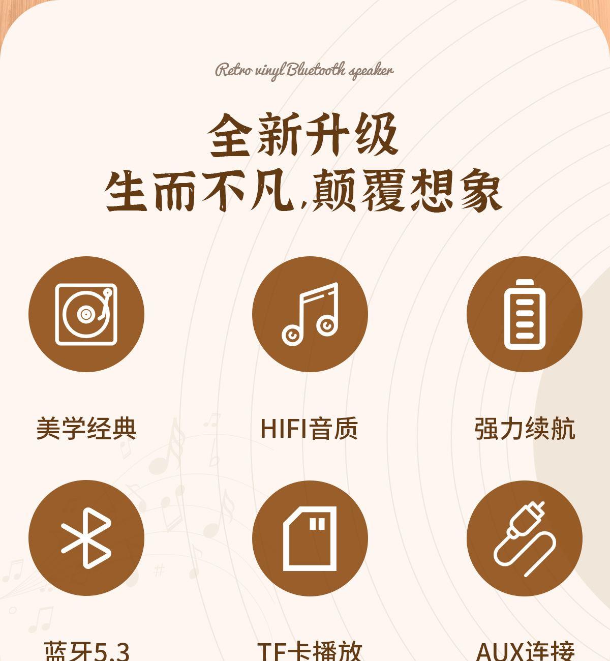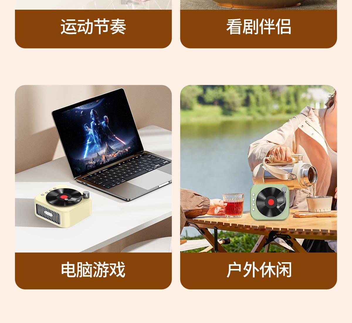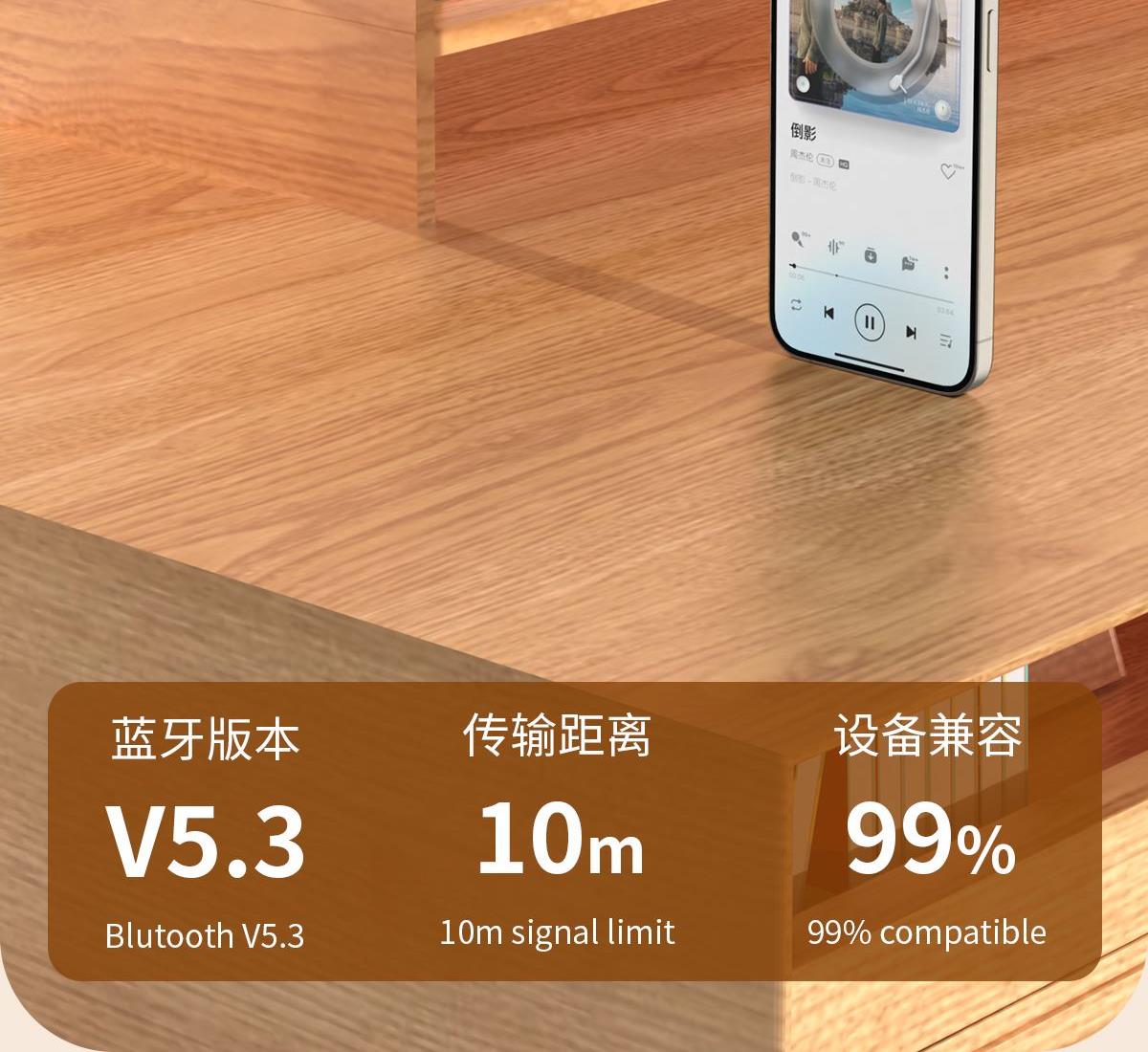 1、小身材大电量,内置锂1000mAh电池 2、喇叭尺寸52mm,喇叭5W,做升压处理。 3、连接一次后蓝牙有记忆功能开机即连。 4、支持蓝牙、USB、AUX、内存卡、四种模式满足每时每刻的音乐氛围需求 5、满满氛围感桑光氛围灯 6、TYPE-C充电口