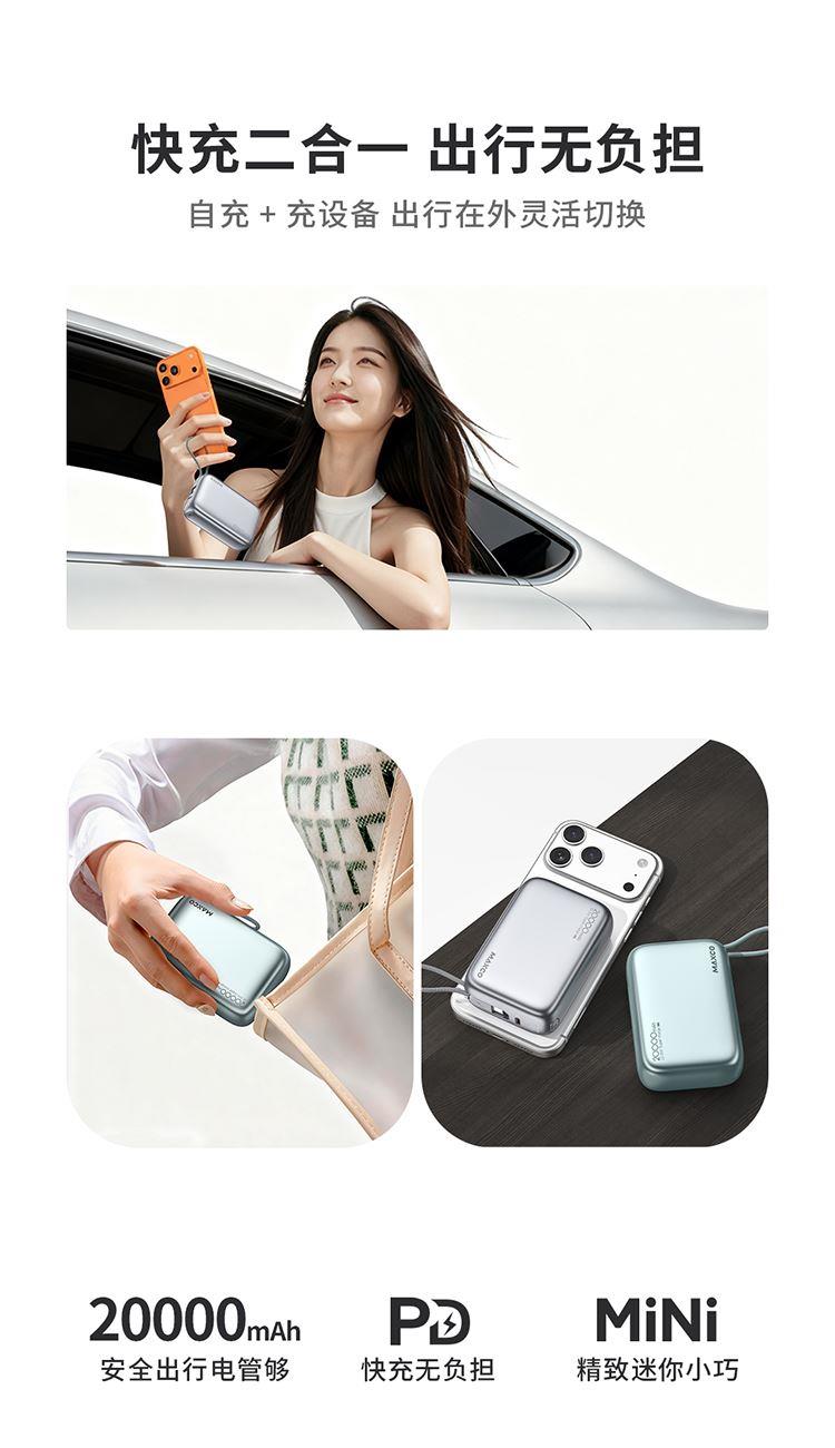 美能格MP52自带Type-C快充线+快充2万毫安移动电源