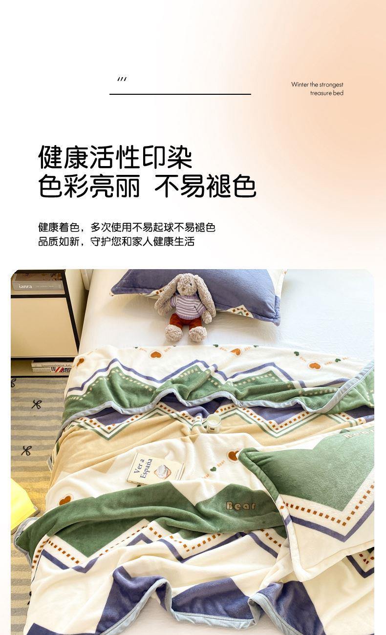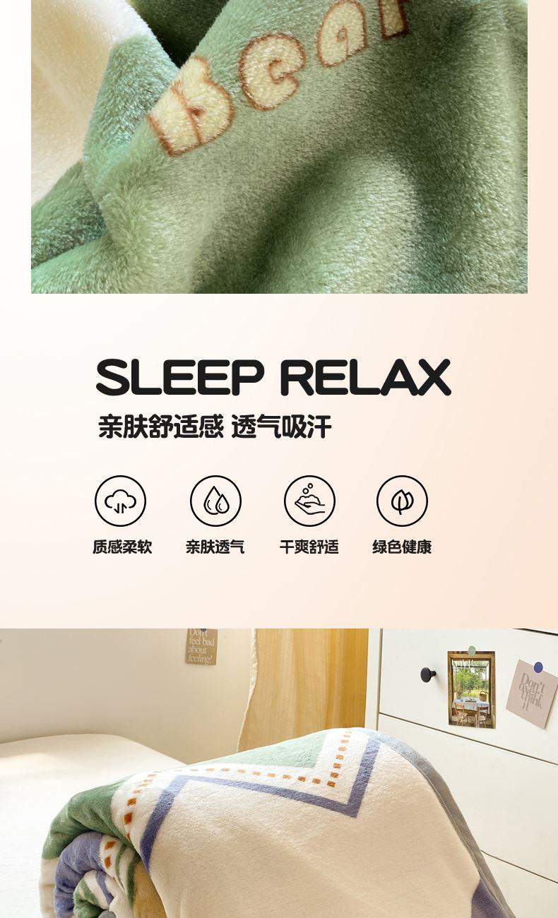 规格:150*200cm 面料:牛奶绒 克重:1000g 产品特点: 牛奶绒面料,充分吸收汗气蒸发产生的热量,舒适透气,精美大方,绒感细腻,呵护您娇嫩肌肤新型植绒技术,绒毛结构丰盈紧实,不易掉毛告别掉毛烦恼
