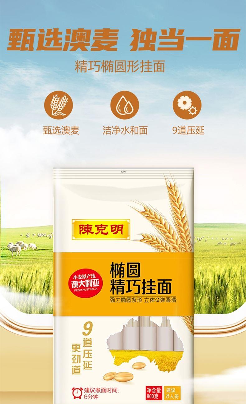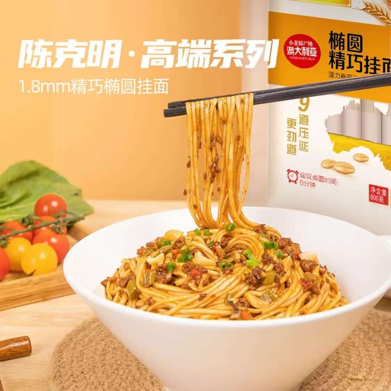 产品规格: 椭圆挂面 800g*2包 选用澳洲进口小麦粉 3蒸3醒,九道压延 中高温慢速烘烤, 立体Q弹柔滑