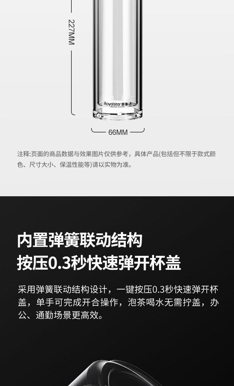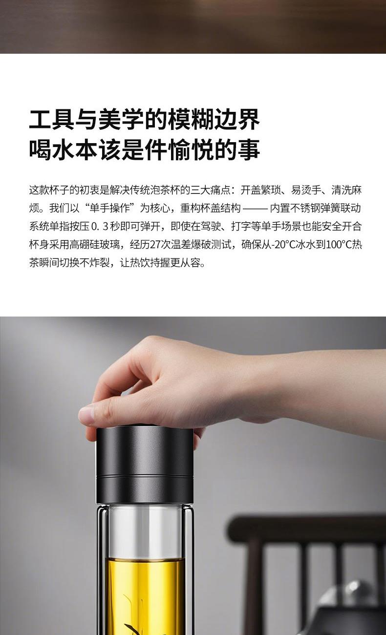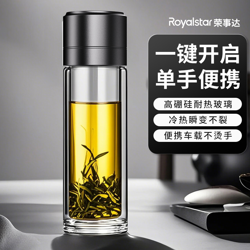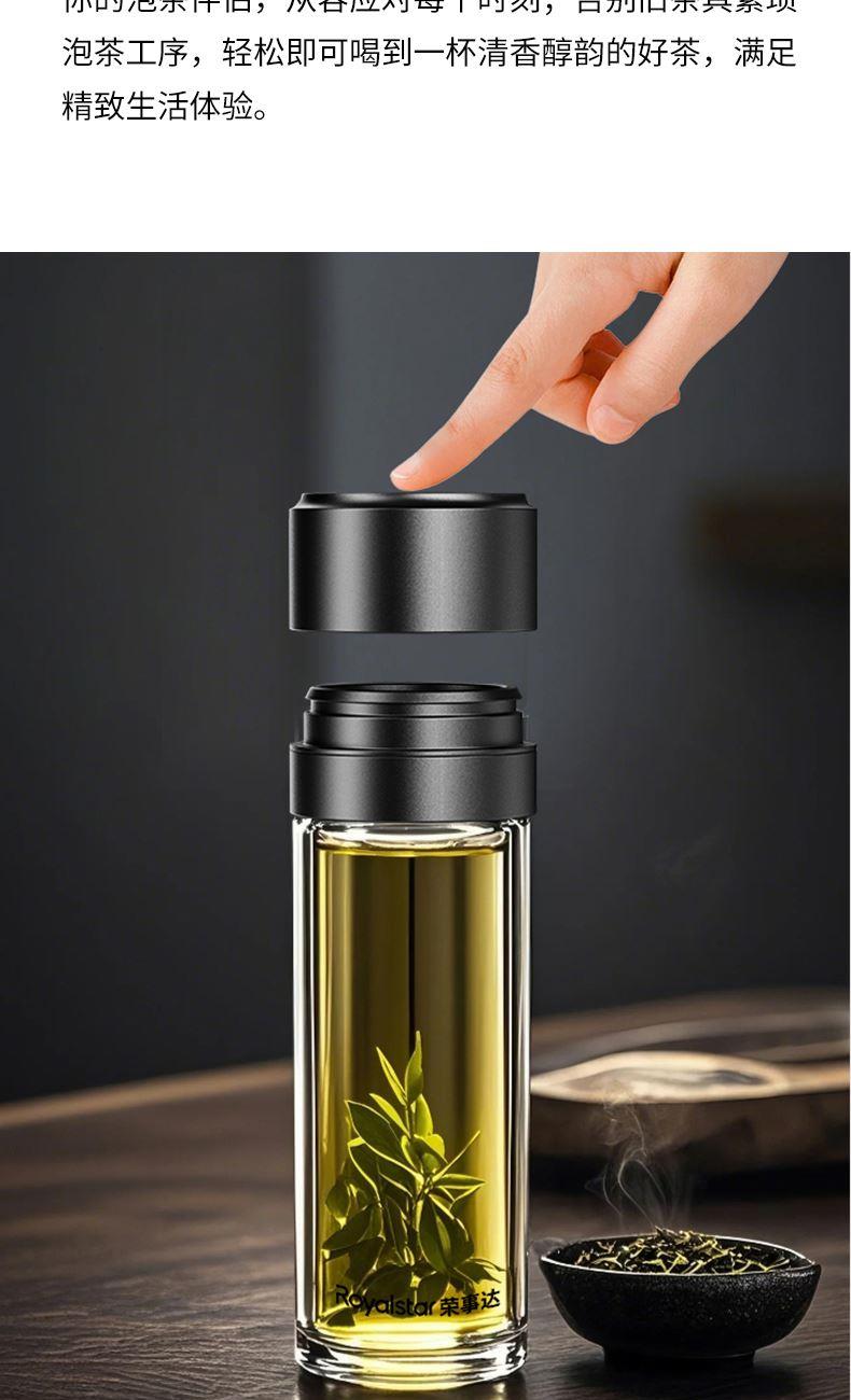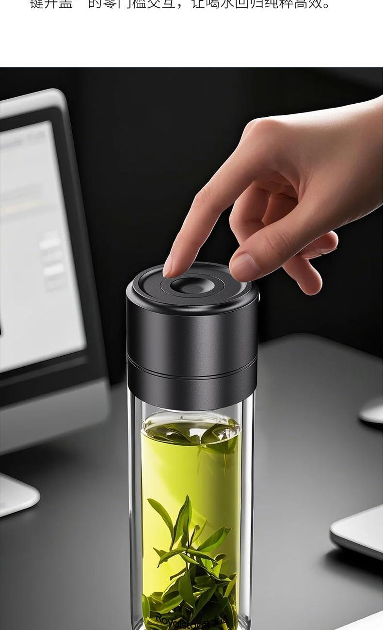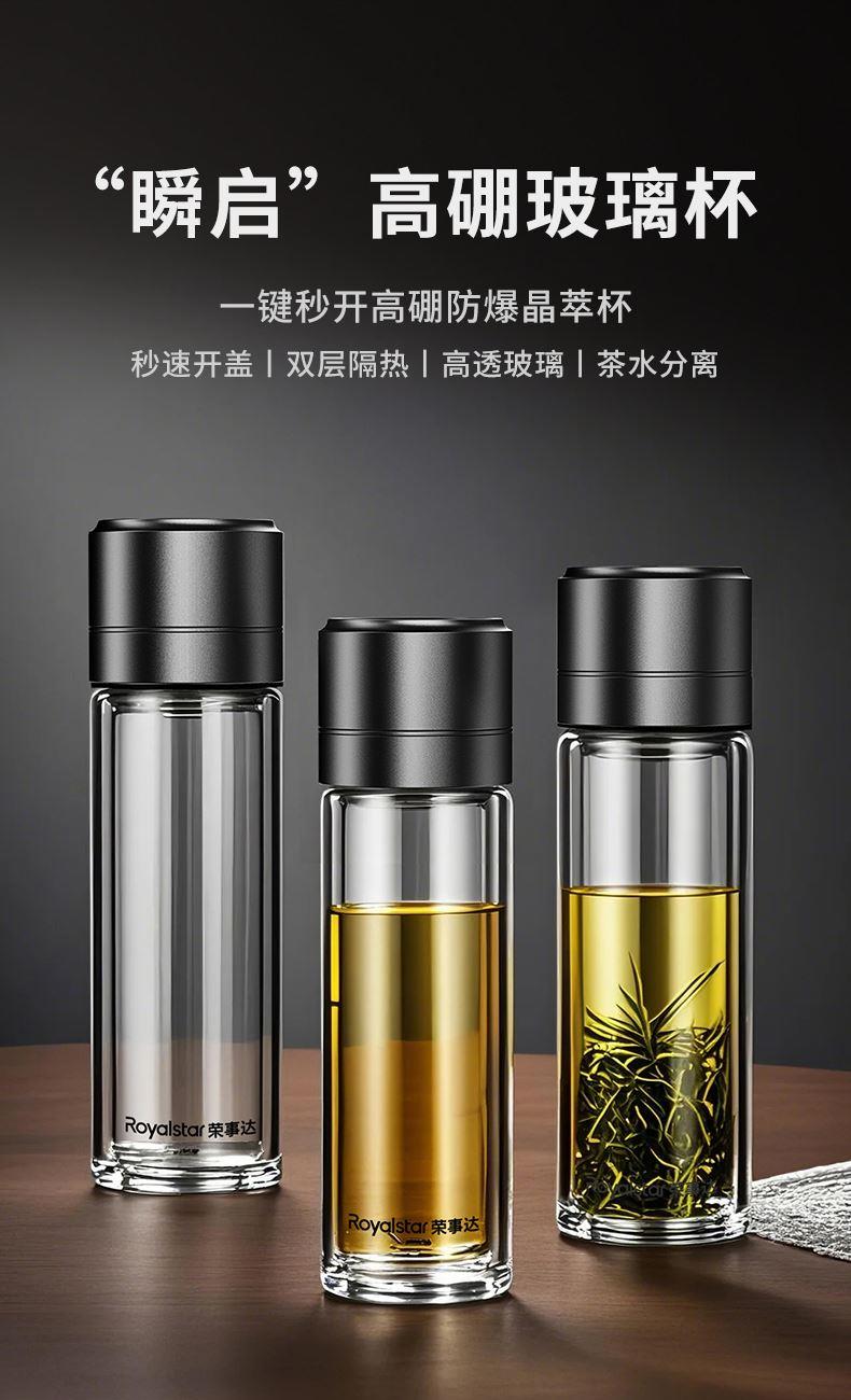 产品型号:RSDBJ019-FJ 产品容量:350ML 产品尺寸:6.5*6.5*22.7cm 产品材质:高硼硅玻璃+304不锈钢 彩盒尺寸:7.2*7.2*23.5cm 外箱尺寸:61*38.5*25cm 采用双层高硼硅高透明玻璃构造,经600多度的高温烧制而成,新型绿色环保,晶莹剔透,质感好; 双层玻璃隔热不烫手,延缓温度流失。 优质食品级PP组杯盖加以不锈钢内塞,工艺严谨,造型简约大气,手感细腻舒适。
