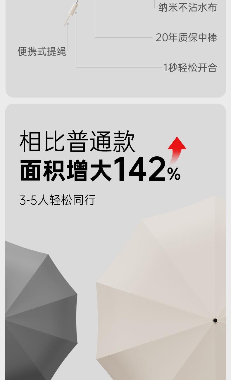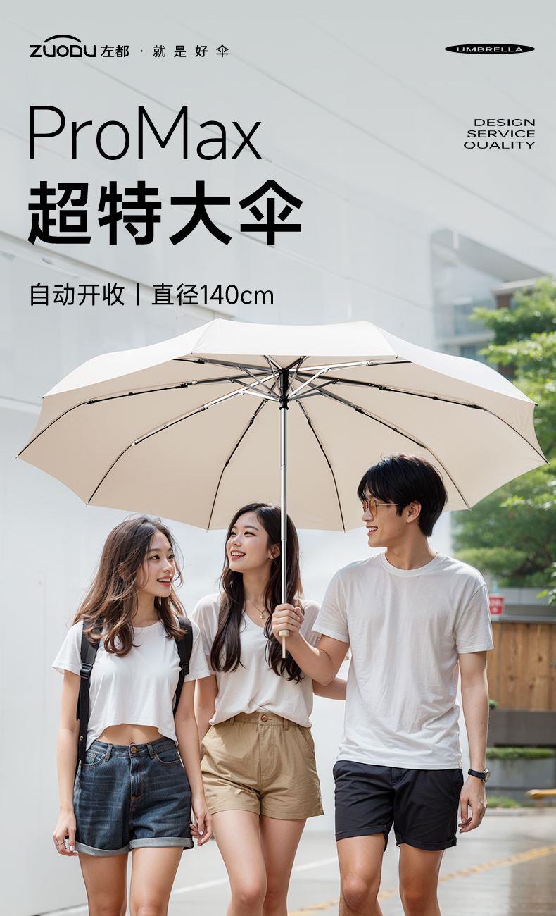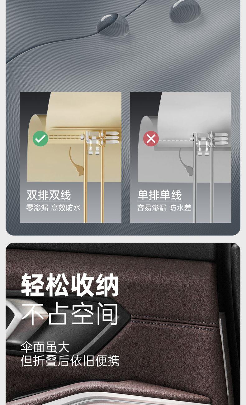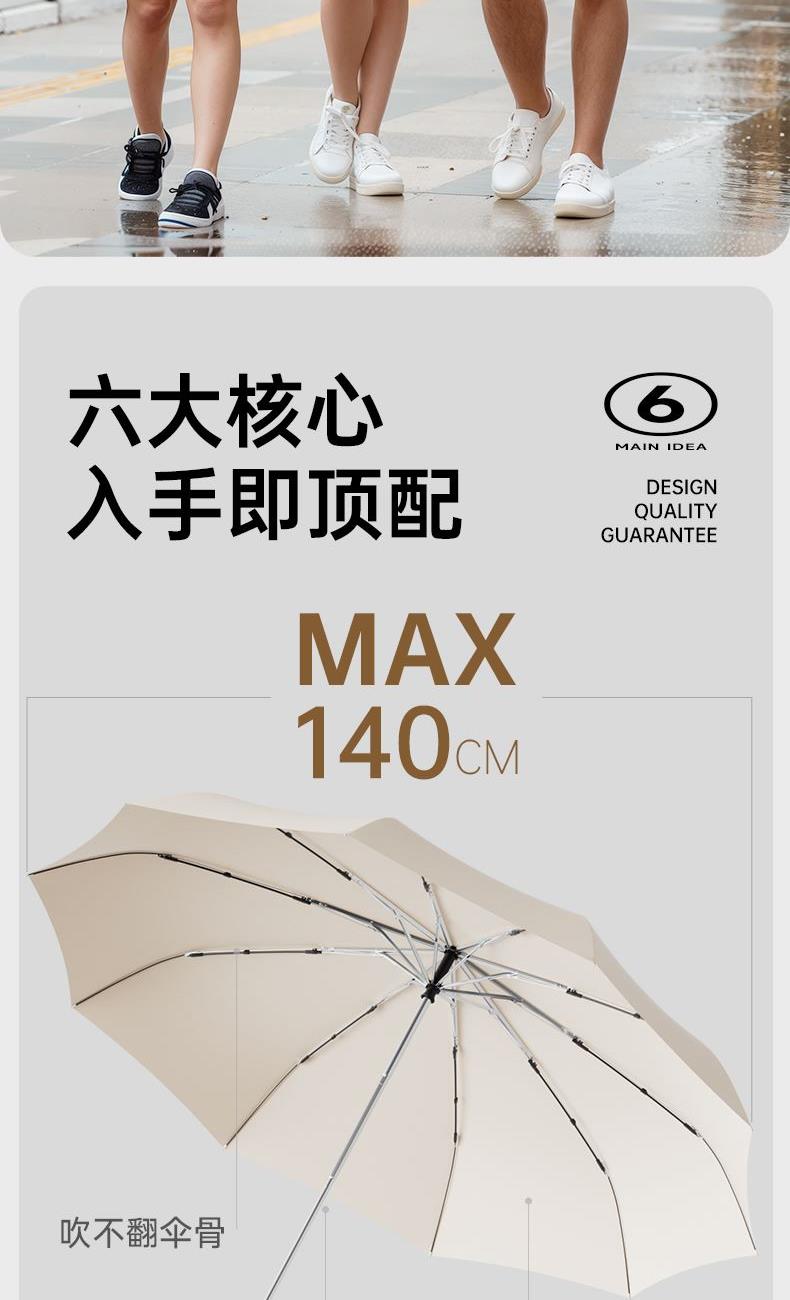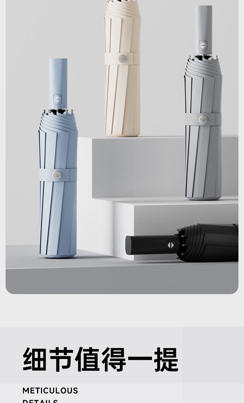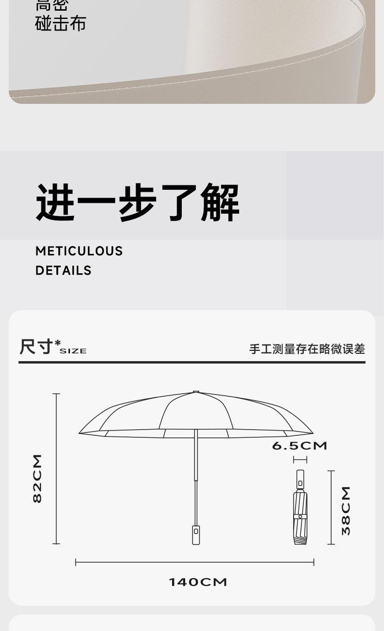 商品货号: ZD132 伞架材质:不锈钢,玻纤 伞面材质:300t疏水布 款式:自动三折雨伞 商品参数:直径:140cm 高度:82cm 收拢直径:6.5cm 收拢高度:38cm 商品毛重:652g 商品颜色:ZD132-140-蓝 ZD132-140-灰 ZD132-140-黑 ZD132-140-米 商品包装:本布伞套