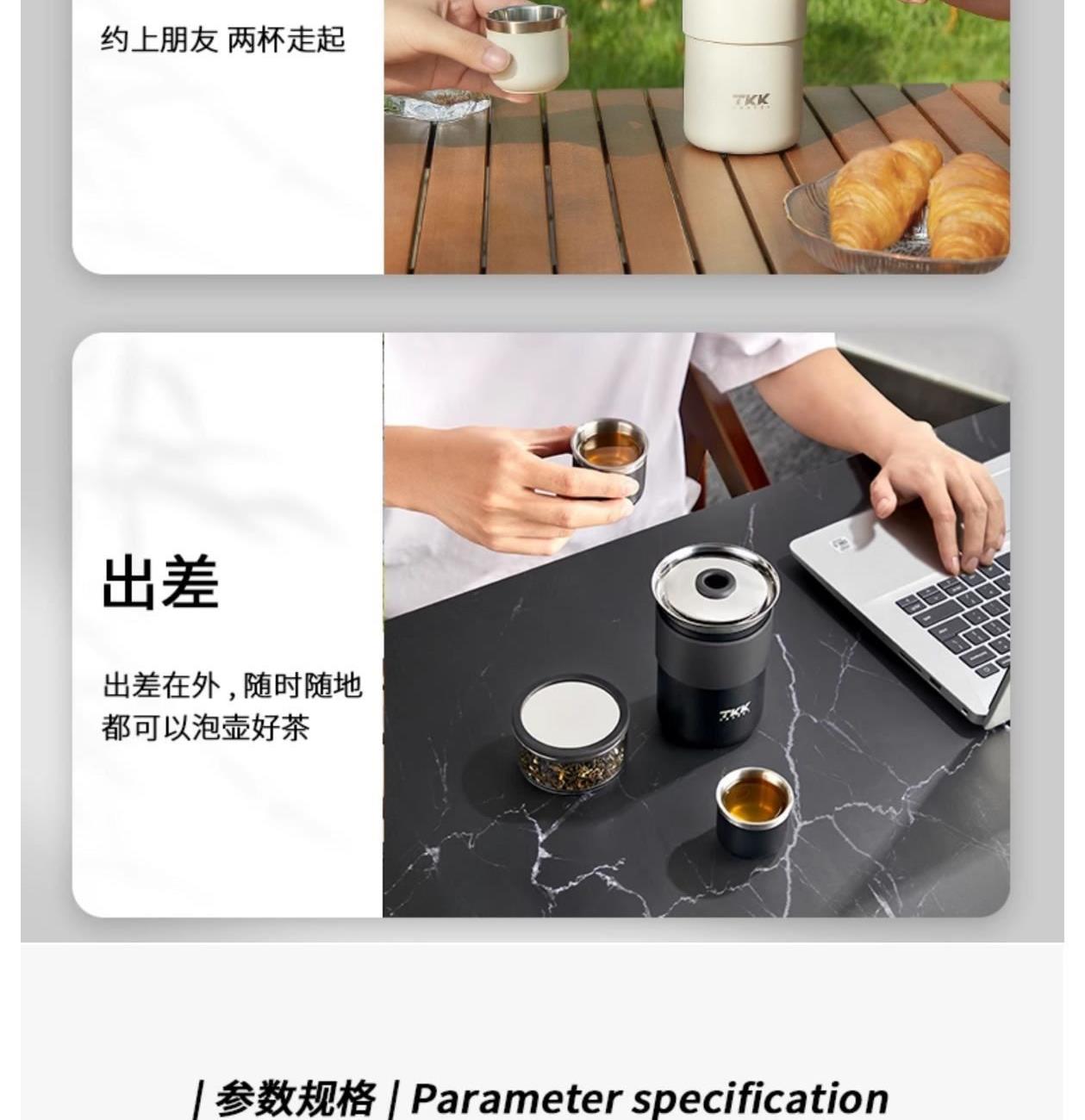 容量:390ML 材质:316不锈钢 1、一体收纳,一壶两杯|双层隔热 2、环保无味,长效保温,收纳便携,防震耐压,出行无负担 3、内置茶隔,任何角度自如倒茶吐茶不吐叶,出水流畅 4、316 不锈钢隔茶网,细密滤孔,精致做工均匀分布,口感无杂质 5、内胆一体设计,便于清洗