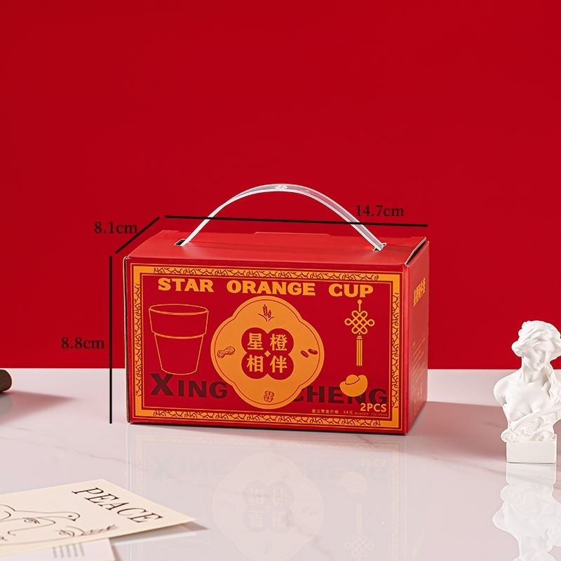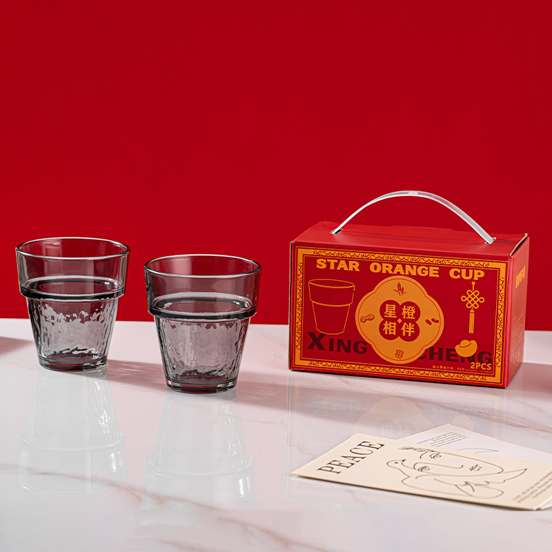 货号:A-XC/L2 星橙两件套(橙色/烟灰) 规格:48套 组合:杯*2(180ml) 产品卖点:星橙玻璃杯,加厚玻璃材质,圆润杯口贴合唇感,饮用顺滑,厚底防滑稳固,放置桌面稳如磐石,「活力橙」与「雅致烟灰」两款配色,橙色如暖阳点亮餐桌,烟灰似墨韵沉淀质感,简约线条勾勒现代美学,适配北欧风、轻奢风等多种家居风格,轻松融入生活场景,一手可握,独饮尽兴、共饮温馨 彩盒尺寸:14.7*8.1*8.8CM 外箱尺寸:46.2*34.6*37.4CM 重量:17.1KG