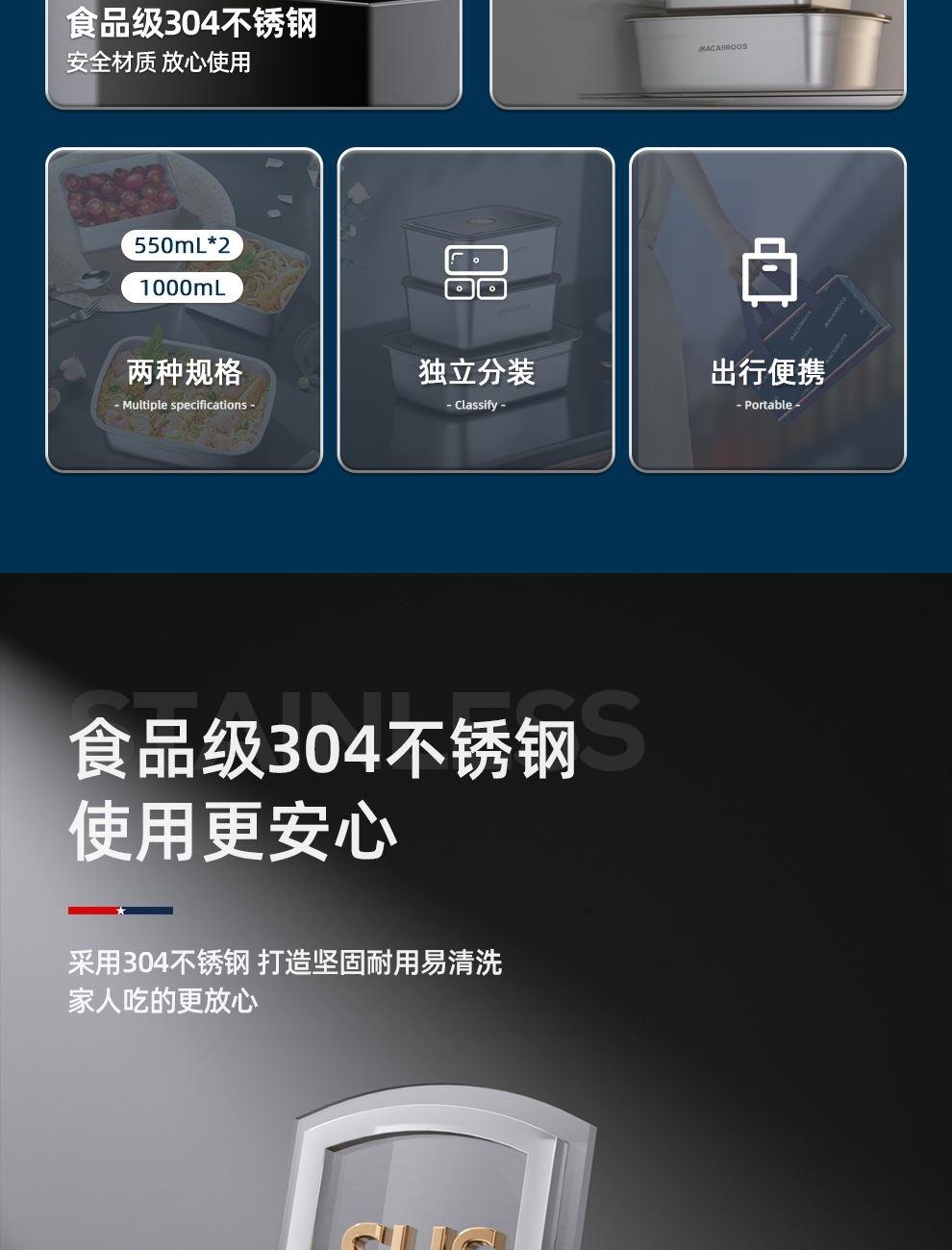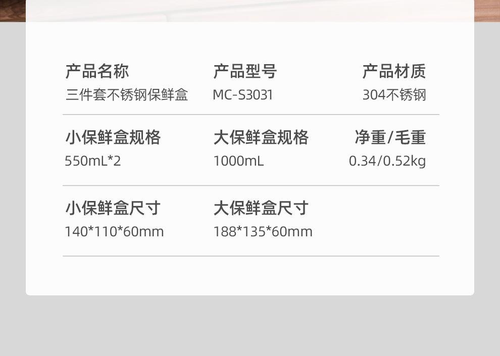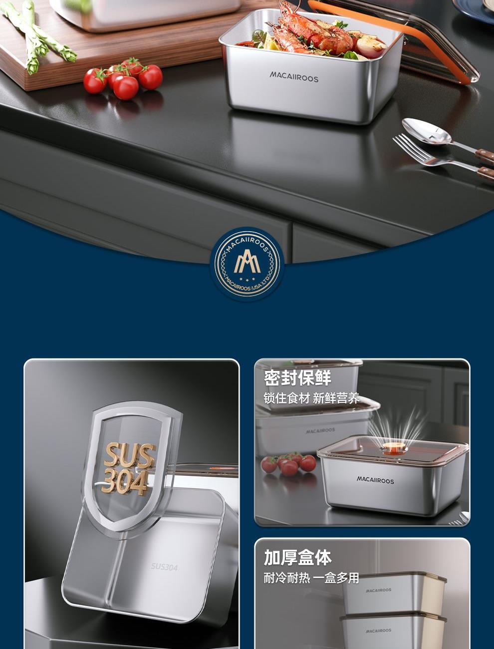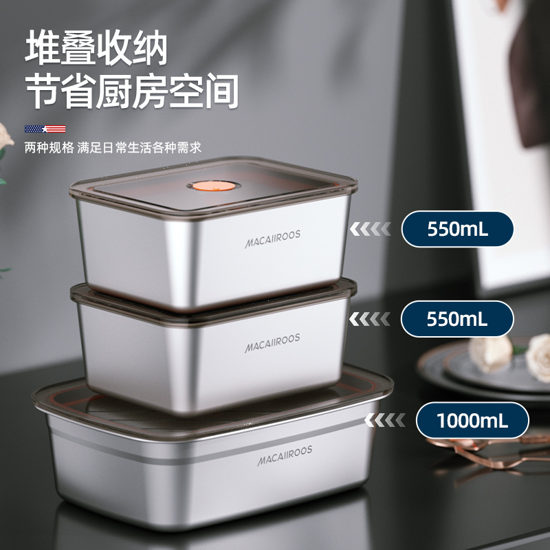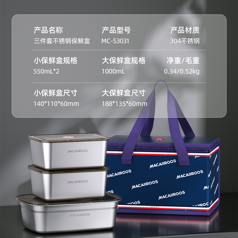 美国迈卡罗三件套不锈钢保鲜盒MC-S3031