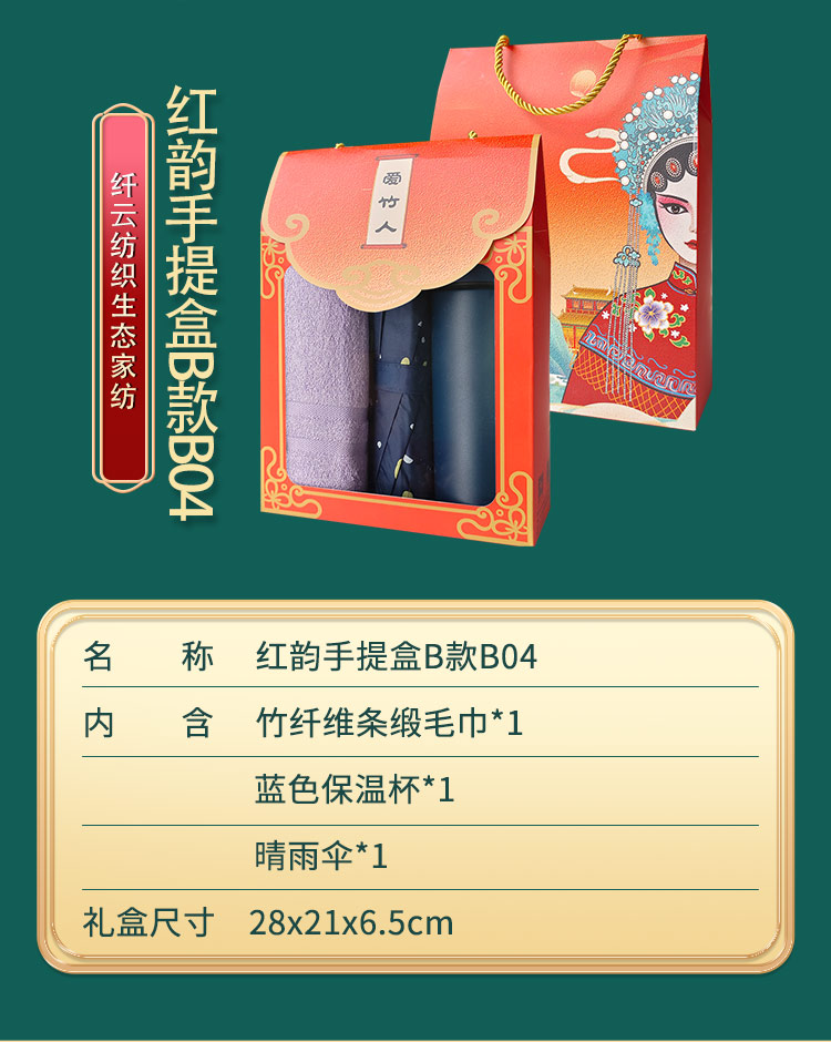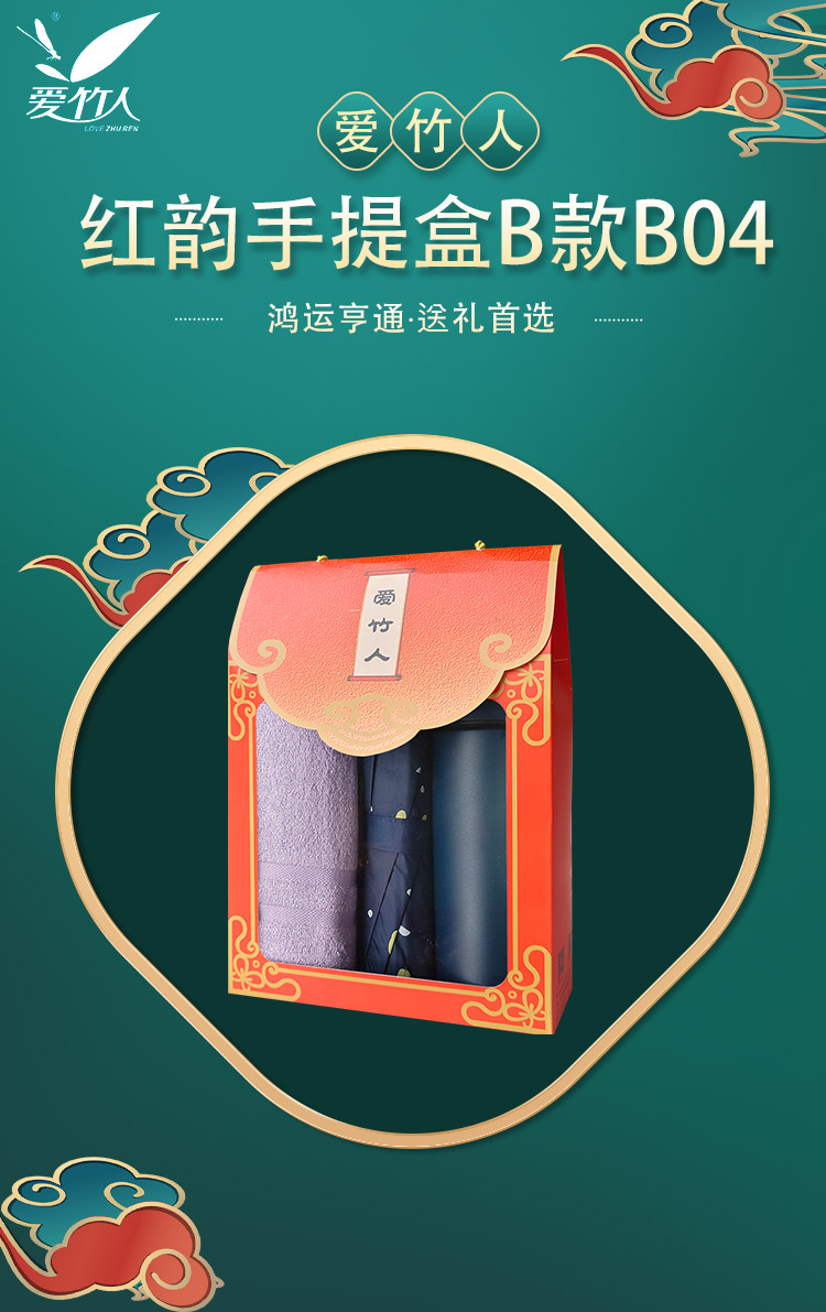 爱竹人红韵礼盒竹毛巾保温杯晴雨伞3件套B04