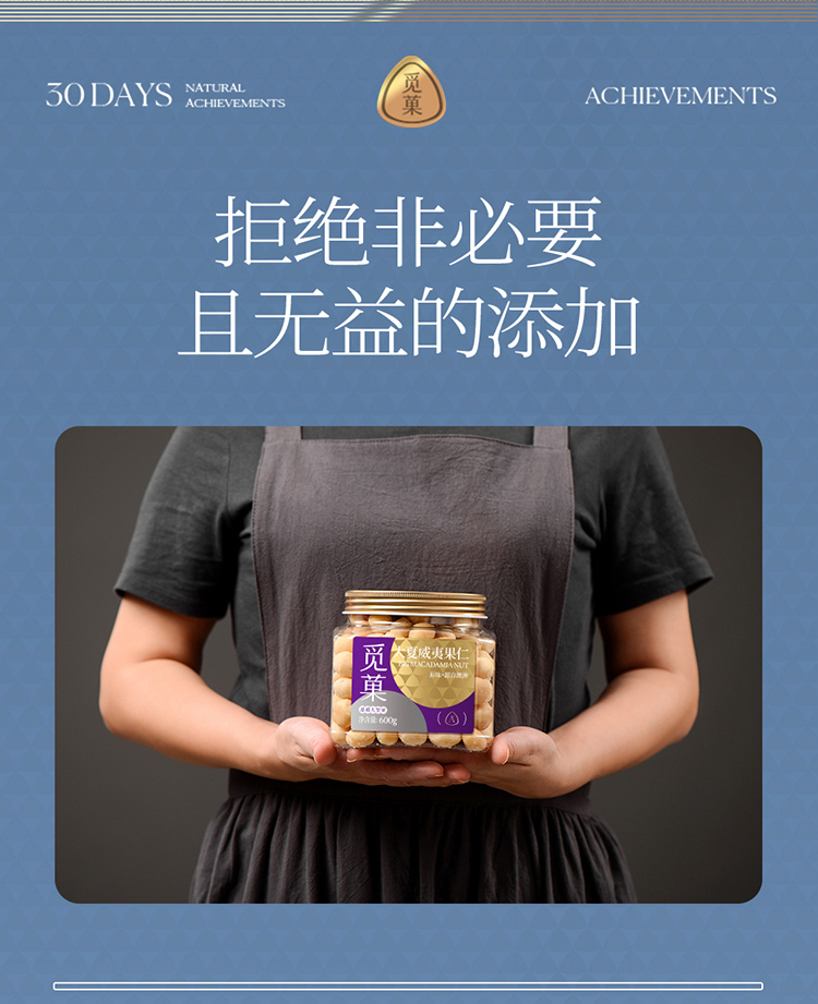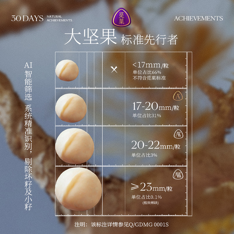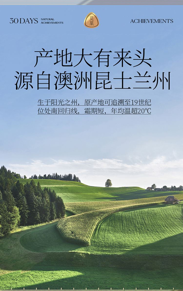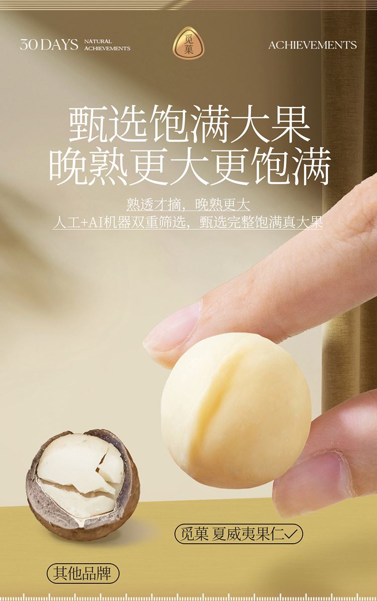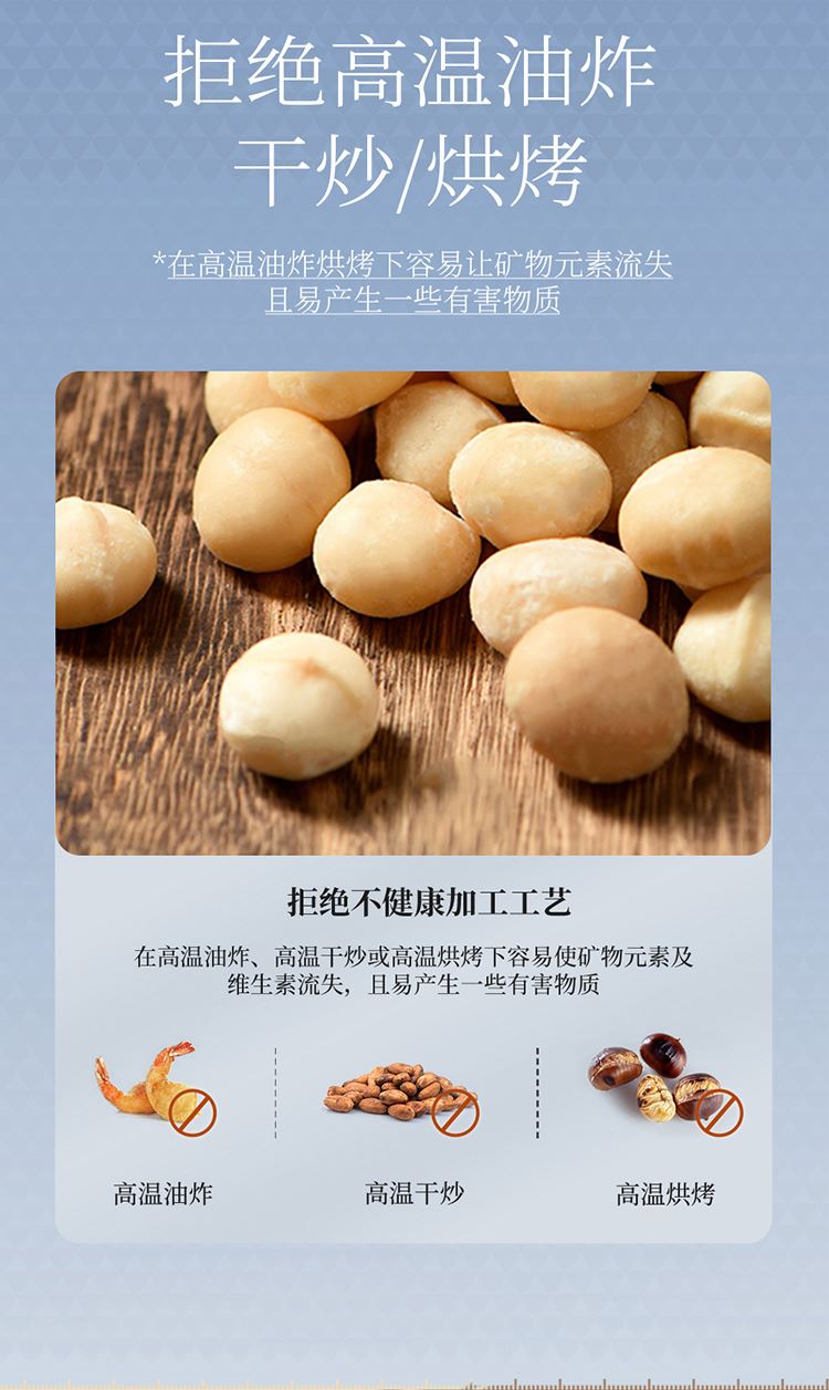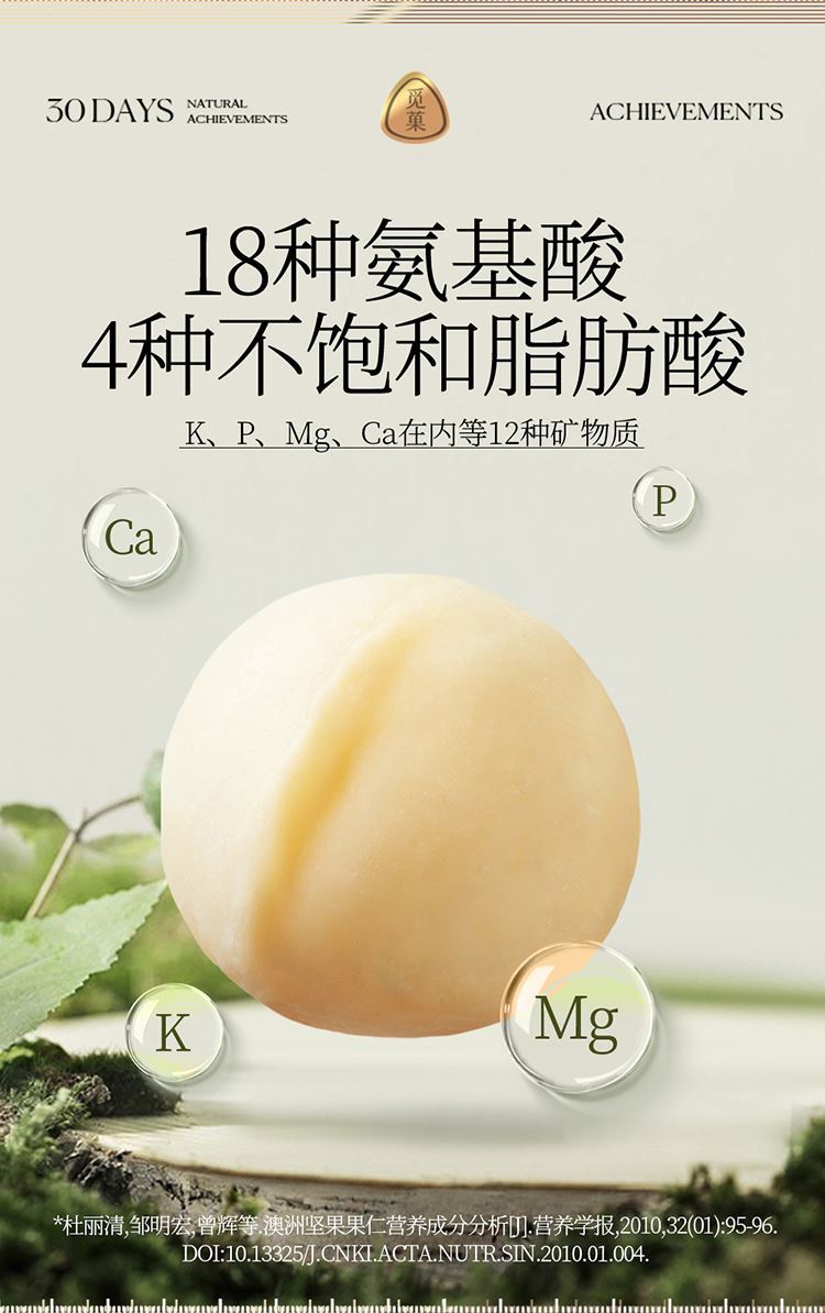 奶香浓郁 原产于澳大利亚 全年阳光充足气候变化小 果实自带奶香, 自然浓郁 甄选大果 好坚果 高标准 只选用17--20mm大果 锁鲜科技 一口尝尽新鲜 当季熟果 ,6层技术锁鲜 留住酥脆口感