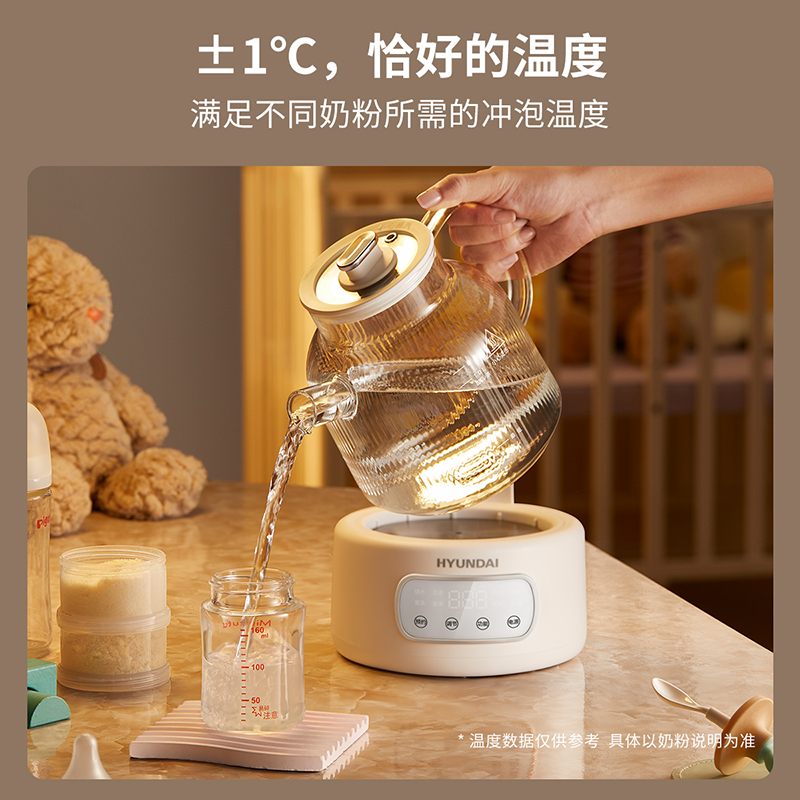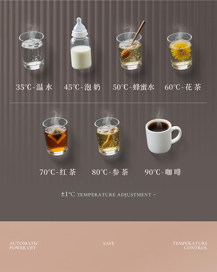 ±1℃调温,满足不同水温需求,花式冲泡随心享,满足不同奶粉所需的冲泡温度。