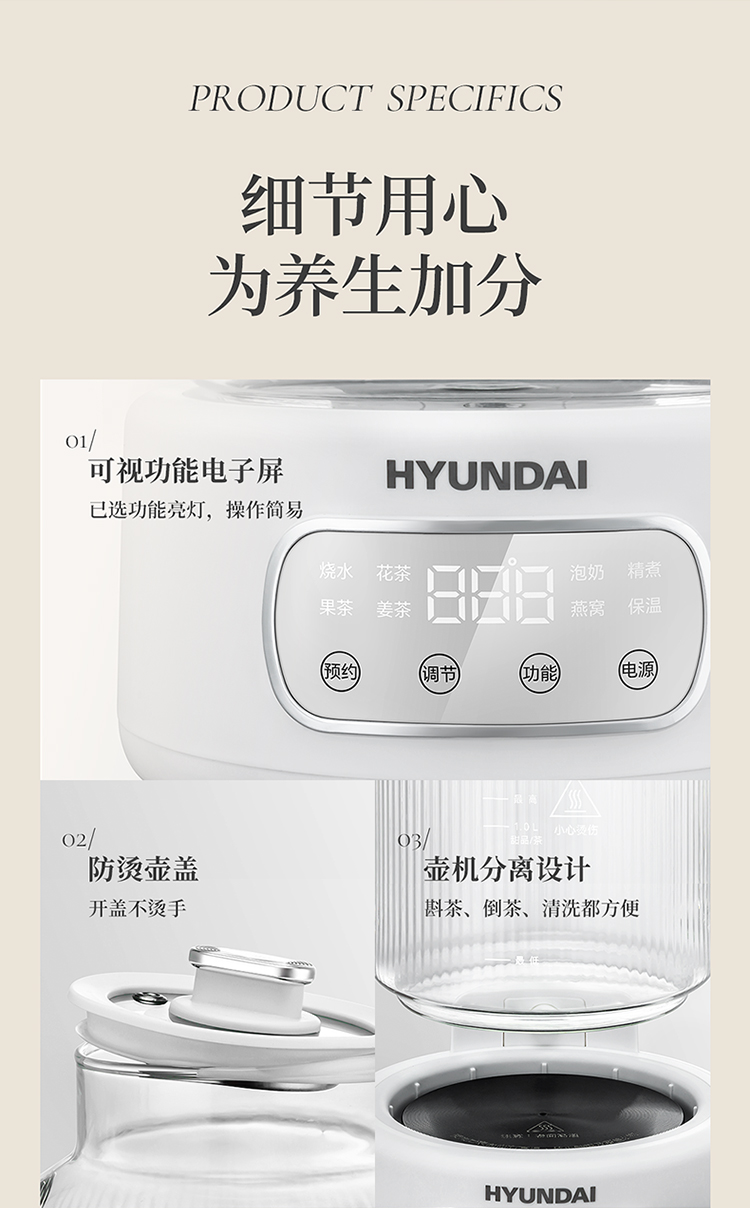 燕窝/泡奶/烧水/花茶/保温/精煮/果茶/姜茶/预约,解锁花样暖饮;