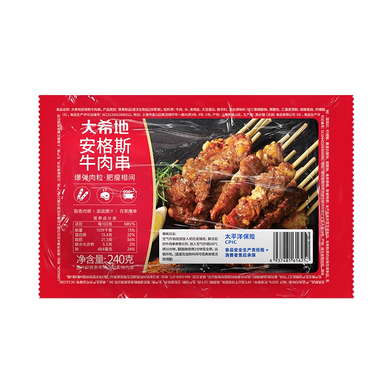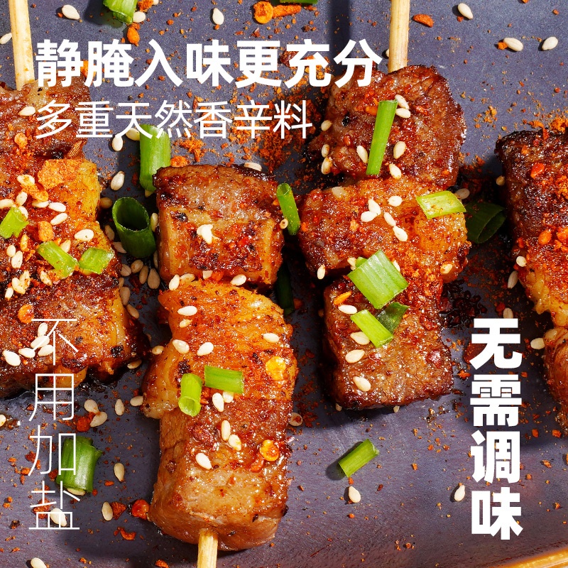 产品参数配置 安格斯牛肉串:240g / 袋,共 5 袋 产品卖点说明 安格斯品质,肉质出众:选用优质安格斯牛肉制作,肉质鲜嫩紧实,自带浓郁肉香,相较于普通牛肉串,更能体现牛肉的醇厚口感与天然风味,每一口都能品味到高品质牛肉的细腻。 足量组合,满足多人需求:5 袋 240g 的牛肉串,总量充足,无论是家庭日常烧烤、朋友小聚分享,还是户外露营加餐,都能提供足够分量,避免多次采购的麻烦。