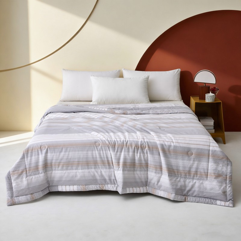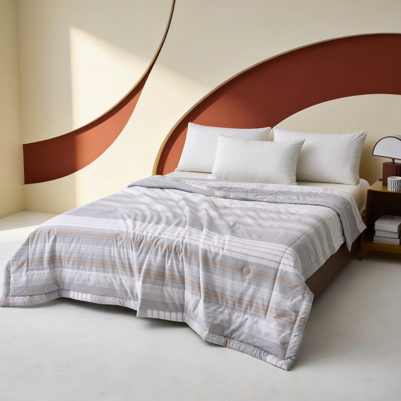 规格:180*200cm 面料:双层纱 填充:羽丝棉 克重:1100g 执行标准:GB/T22796-2021 安全类别:GB18401-2010 B类 1.甄选优质双层纱面料,纤维柔软蓬松,手感柔软,拉力强度高,织物贴身舒适; 2.填充物选用优质A类整张羽丝棉纤维手感犹如羽绒般,轻盈蓬松,柔软舒适 3.采用单边暗合缝制,定点绗缝工艺,日式简约设计风格,简约时尚,让您感受科技生态睡眠!