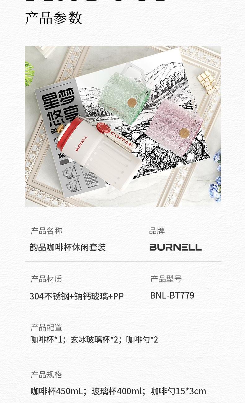材 质:304不锈钢+无铅钠钙玻璃+PP 配 置:咖啡杯*1;玄冰玻璃杯*2;咖啡勺*2 规 格:咖啡杯450mL;玻璃杯400ml;咖啡勺15cm*3 装 箱 数:12pcs/箱 杯体采用304材质,耐腐蚀 一键开盖,带锁扣,防漏出门更安心。 玻璃杯采用无铅纳钙玻璃杯材料,加厚杯身,更耐用,不易碎。 锤纹渐变设计,美观大方,搭配304不锈钢咖啡勺,更加实 用,健康。 礼盒包装,彰显珍贵品质。