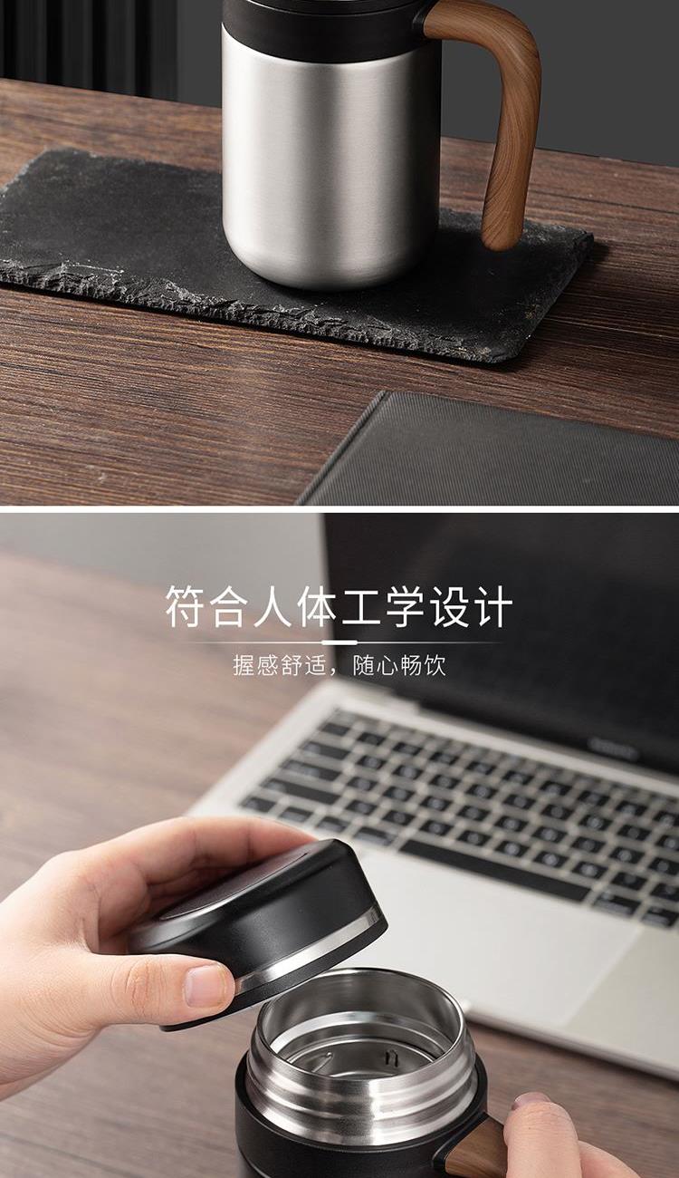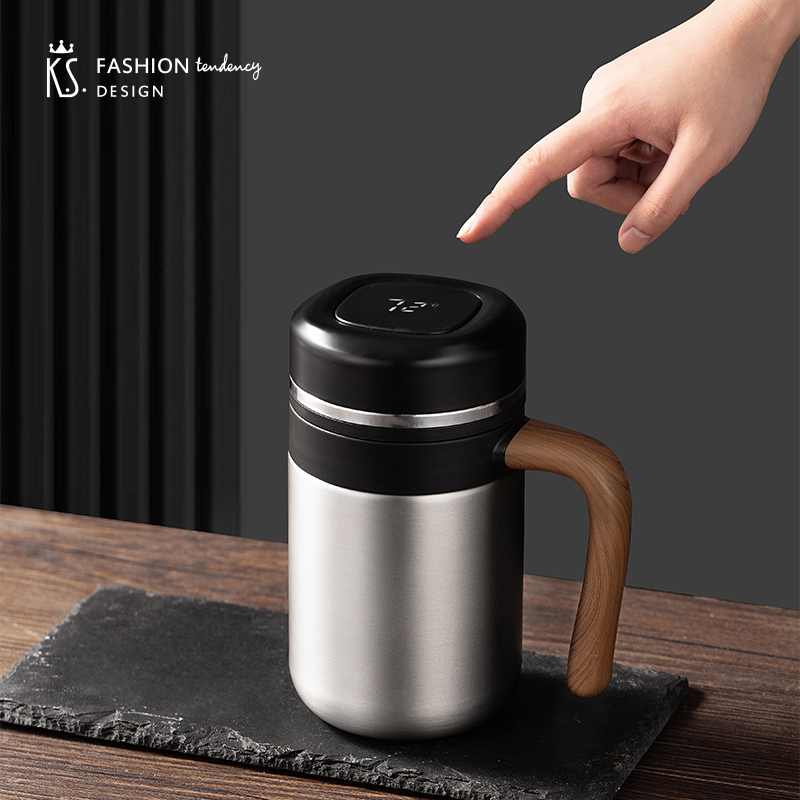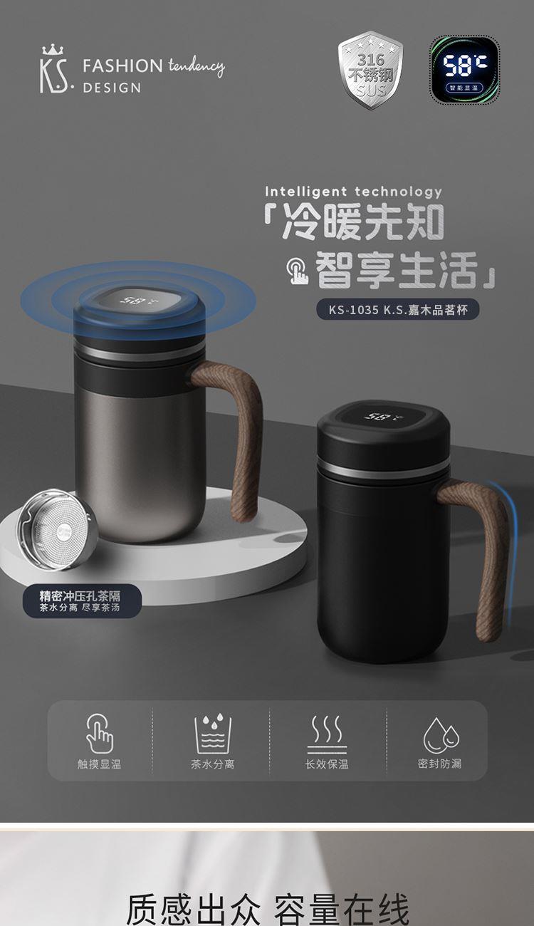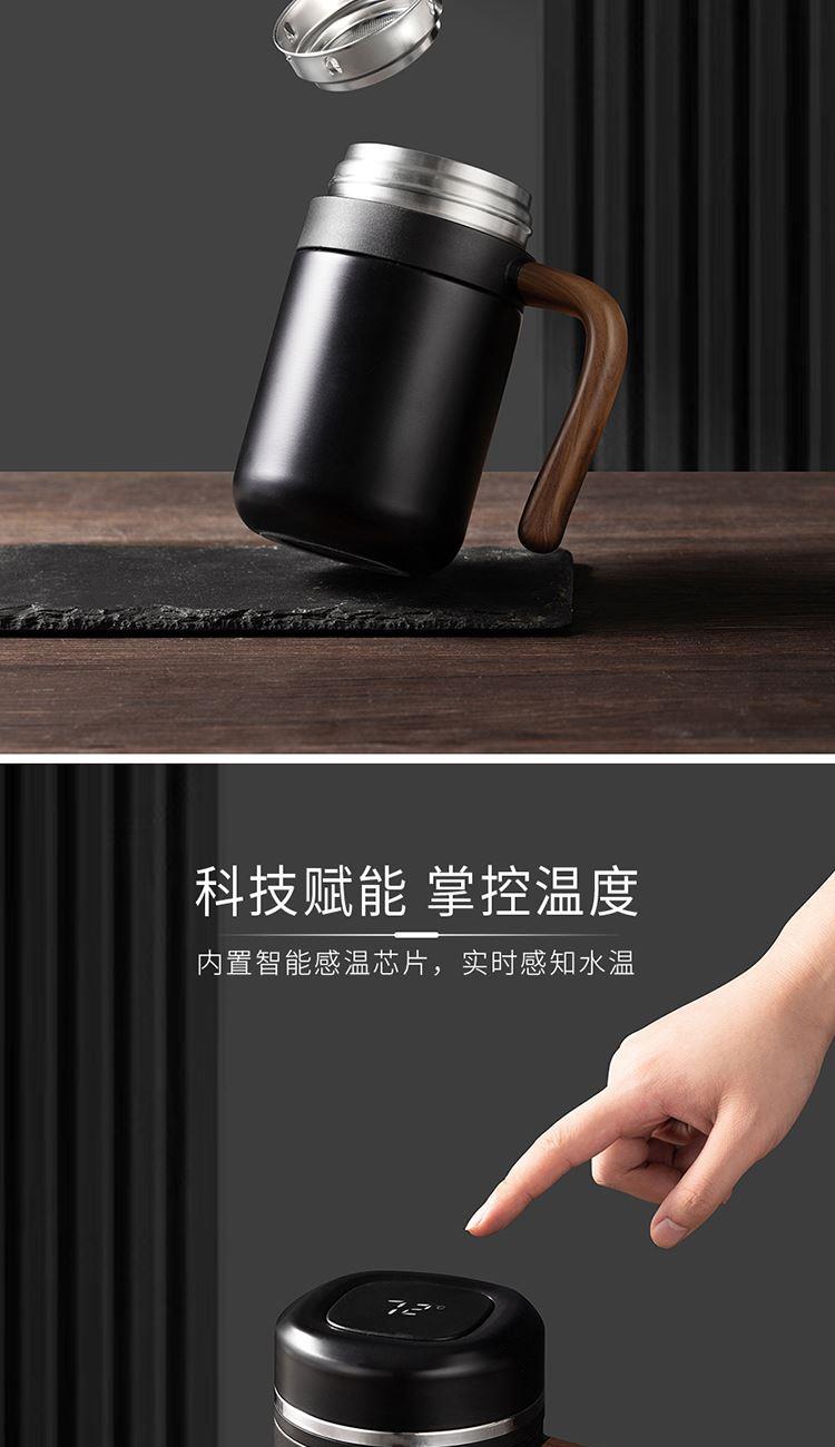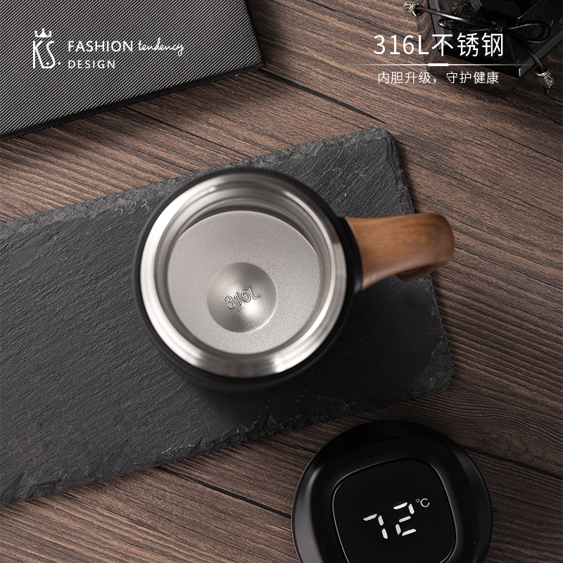 •材质:内胆/304不锈钢 外壳/304不锈钢 手柄:手感漆+汽转印 食品级PP盖 •规格:480ML •包装:撕拉彩盒+手提袋 1.480ml大容量,不用频繁接水。 2.磨砂液晶显温屏,质感;温度一触即显,避免开水烫伤。 3.316不锈钢内胆,安全有保障。独立提篮茶隔,喝茶不吐渣。 4.仿木纹把手设计,特殊工艺触感漆喷涂,符合人体工程学,居家办公全场景通用。 5.礼盒包装,双色可选。