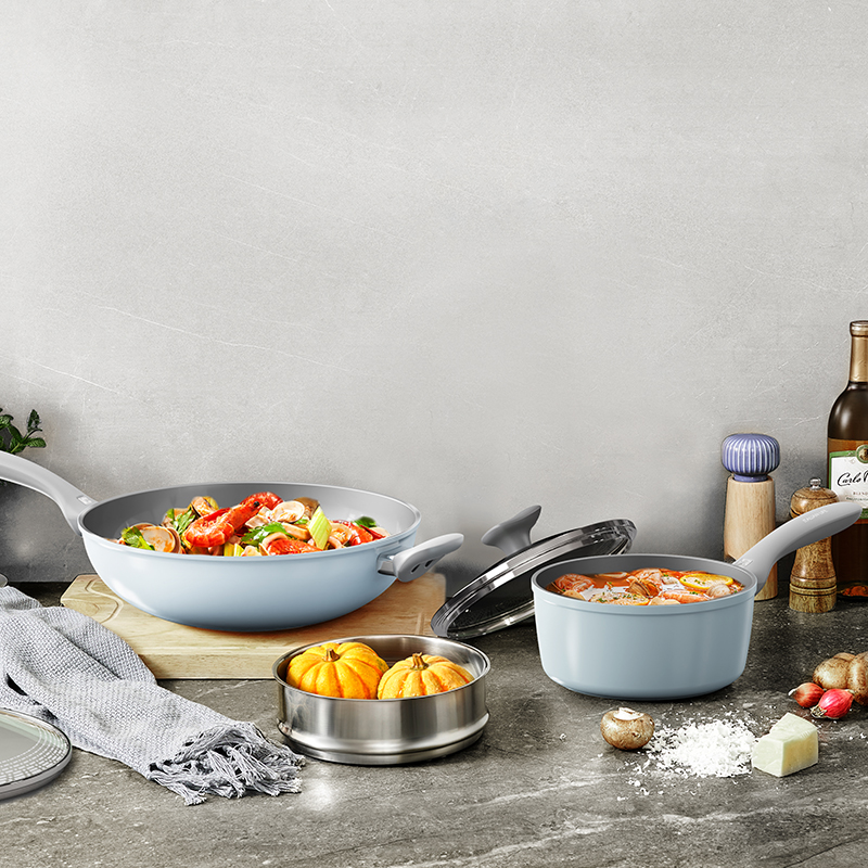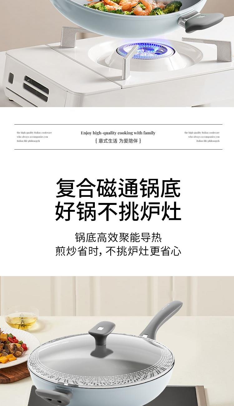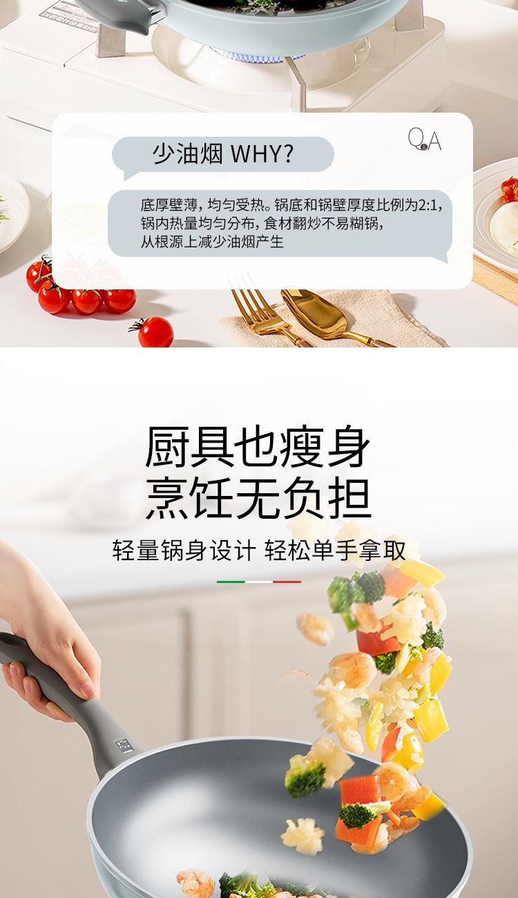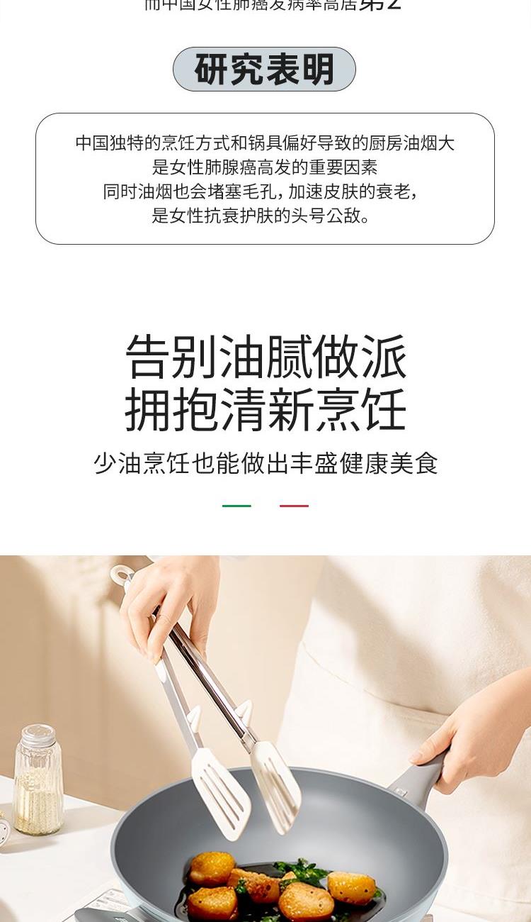 规格:32cm炒锅+18cm奶锅+18cm蒸格 材质:铝合金+陶瓷 单个尺寸:650*400*172 1、无铆钉,全锅无死角不藏污 2、配蒸笼上蒸下煮,一份时间双份美味 3、厚底薄壁,有效减少70%油烟 4、陶瓷外壁,久烧不易变色 5、不含PFAS PTEE,烹饪0担忧