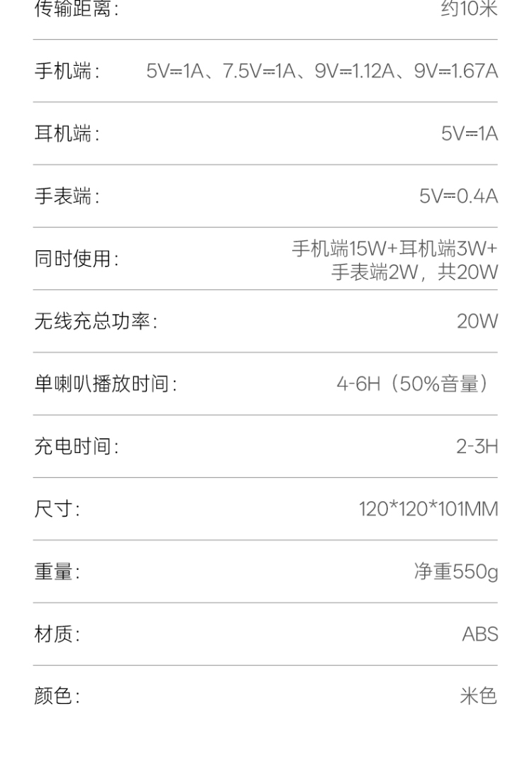无线充区产品总功率 20W