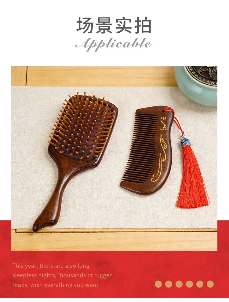 编码:W5054 内配:彩绘梳子礼盒三件套 柄梳、按摩梳、月梳(配流苏)、礼盒、手提袋 尺寸: 彩绘梳-8*24.5cm、月梳-5.5*12.5cm、按摩梳-5*9.5cm 礼盒-长24.5*宽13.5*高3.7cm