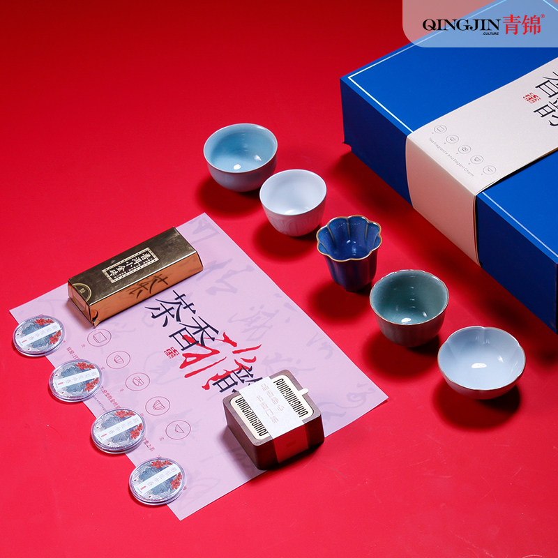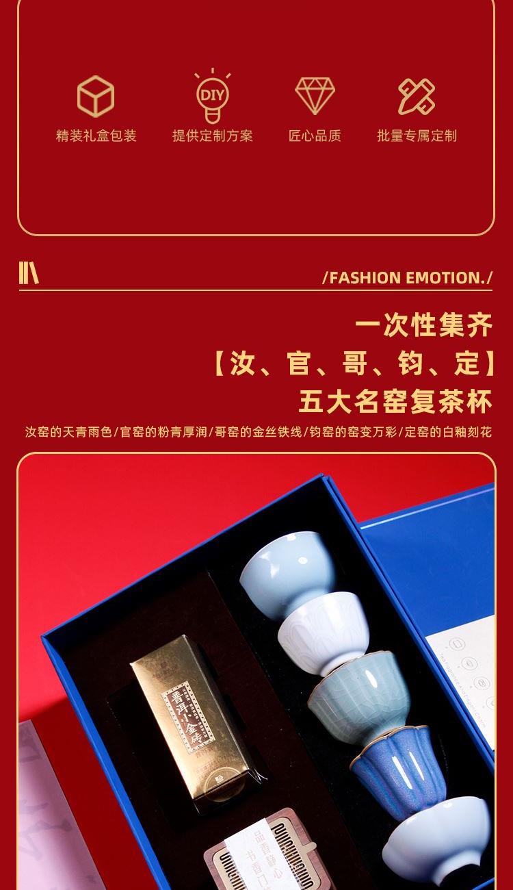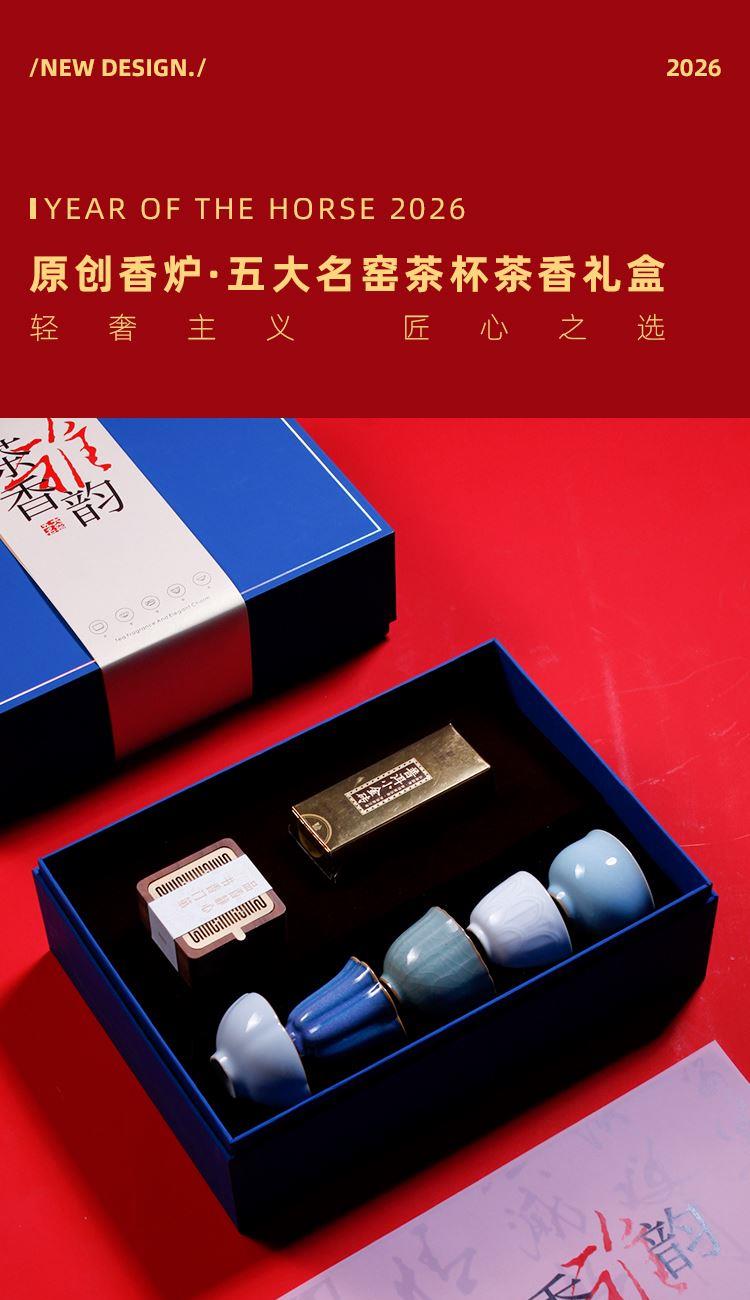 一堂和气-茶香雅韵五大名窑主人杯香器茶叶礼盒装送客户更有创意