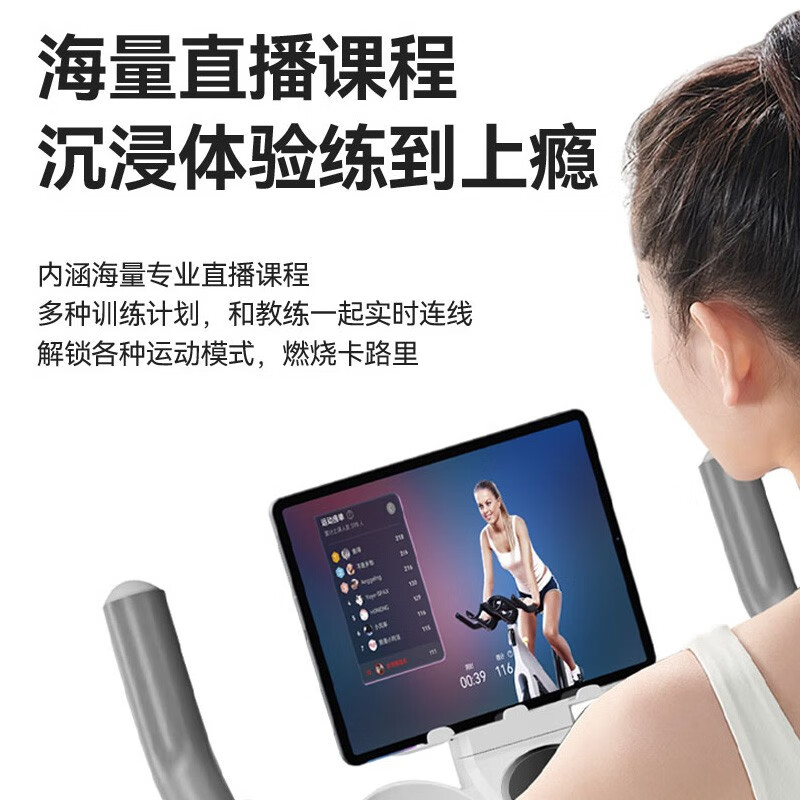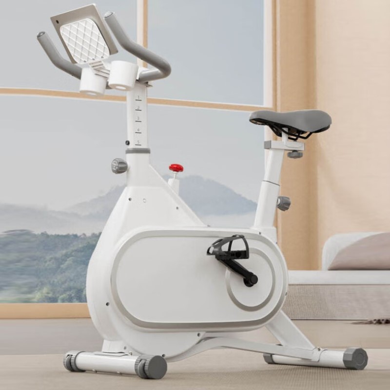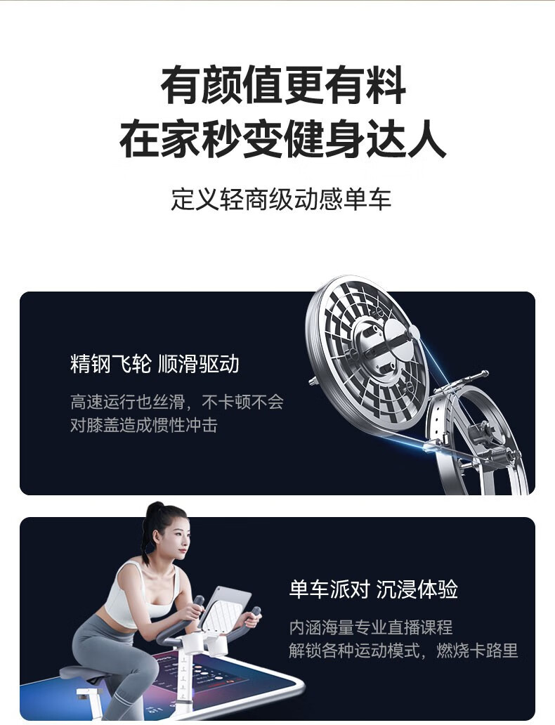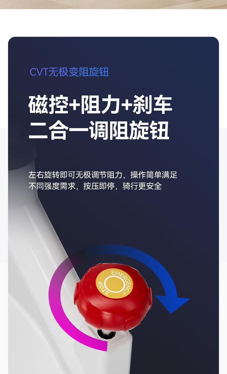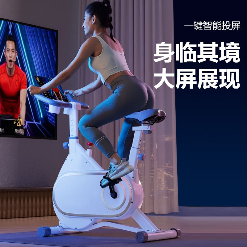 产品:HT-O5SB健身车 传动系统:皮带传送 阻力系统:无级变速 体位调节:坐椅上下左右可调 APP:SPAX 净重:18kg 毛重:20.5KG 整机承重:120KG 产品尺寸:930.5*480.5*1150.5mm 适用人群:老少皆宜 颜色:白色 足不出户尽享运动欢益,转速顺畅稳定,增加您的乐趣体验,无极阻力调节,紧急快速按压刹车变速阻力调节,6KG电镀实心大车轮,飞轮越重骑起来越稳,负荷更稳定,多档位调节坐垫,满足不同身高调节,智能多功能显示屏,电子表盘简约设计,聪明的车身设计,是畅快骑行的根本,结实能承才是硬道理,120KG承重,潮流设计解救颜控。