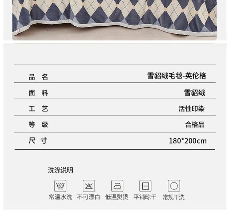 啄木鸟(PLOVER)雪貂绒毛毯-英伦格180*200cm