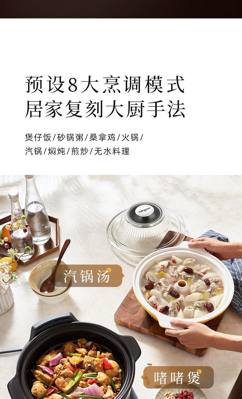 1.8大烹饪模式:煲仔饭/砂锅粥/桑拿鸡/火锅/汽锅/焖炖/煎炒/无水料理