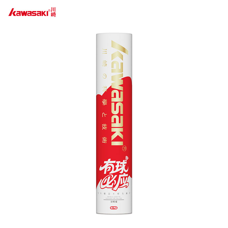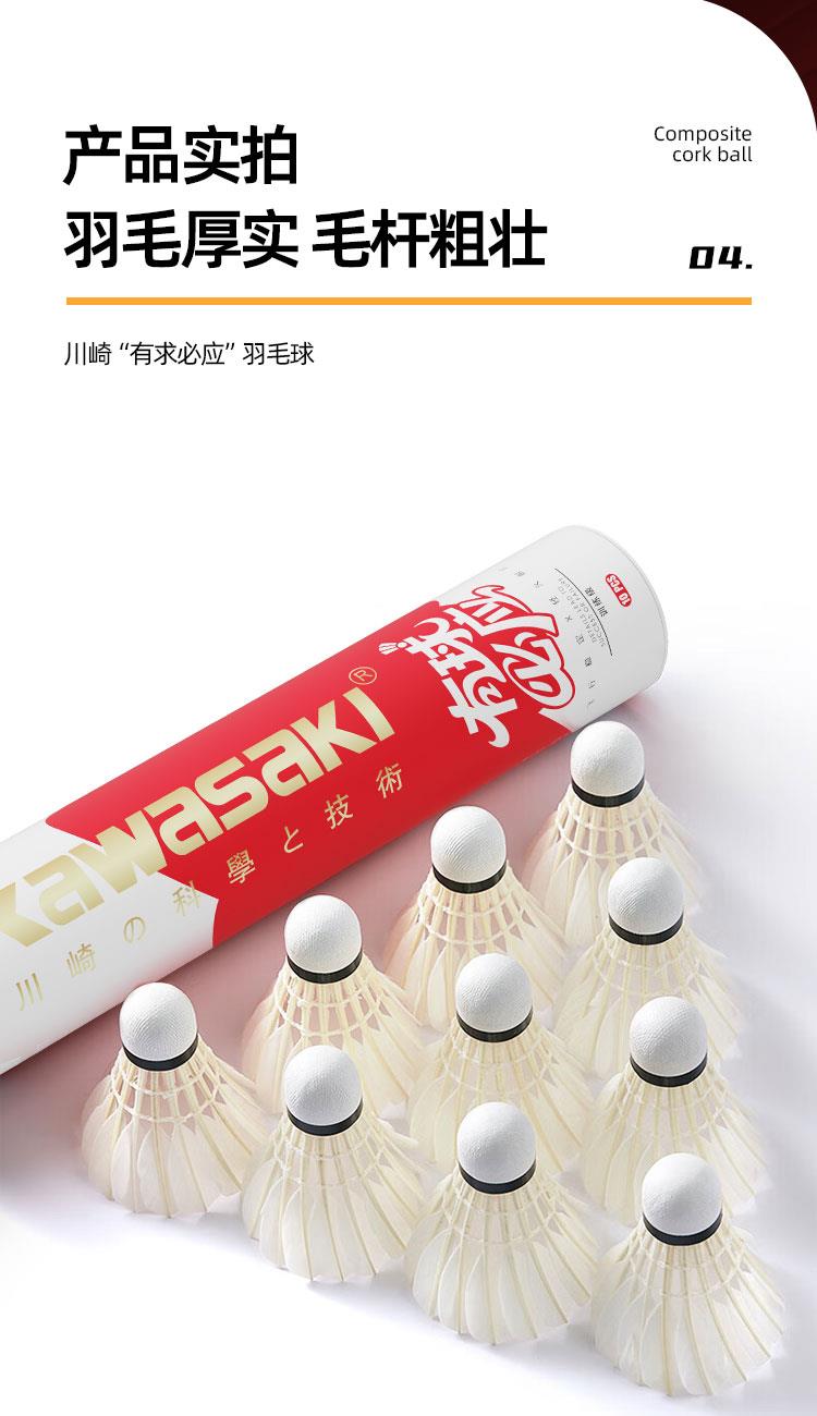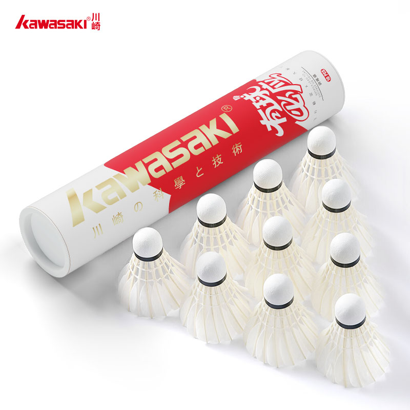包装清单:羽毛球10个/筒 × 1 材质:鹅毛 规格:10只装 球头:双拼球头 Kawasaki百年运动户外 专注新礼品渠道 定义健康礼品 配合灵活 深度定制图案 正品授权专卖 品质保障 主流电商平台销量排行TOP1 高复购率 市场热销火爆稀缺产品 训练级耐打羽毛球 优质鹅毛 落点准 经久耐打 纹理清晰 飞行更稳定 台纤球头 保证飞行弧度 重击不变形