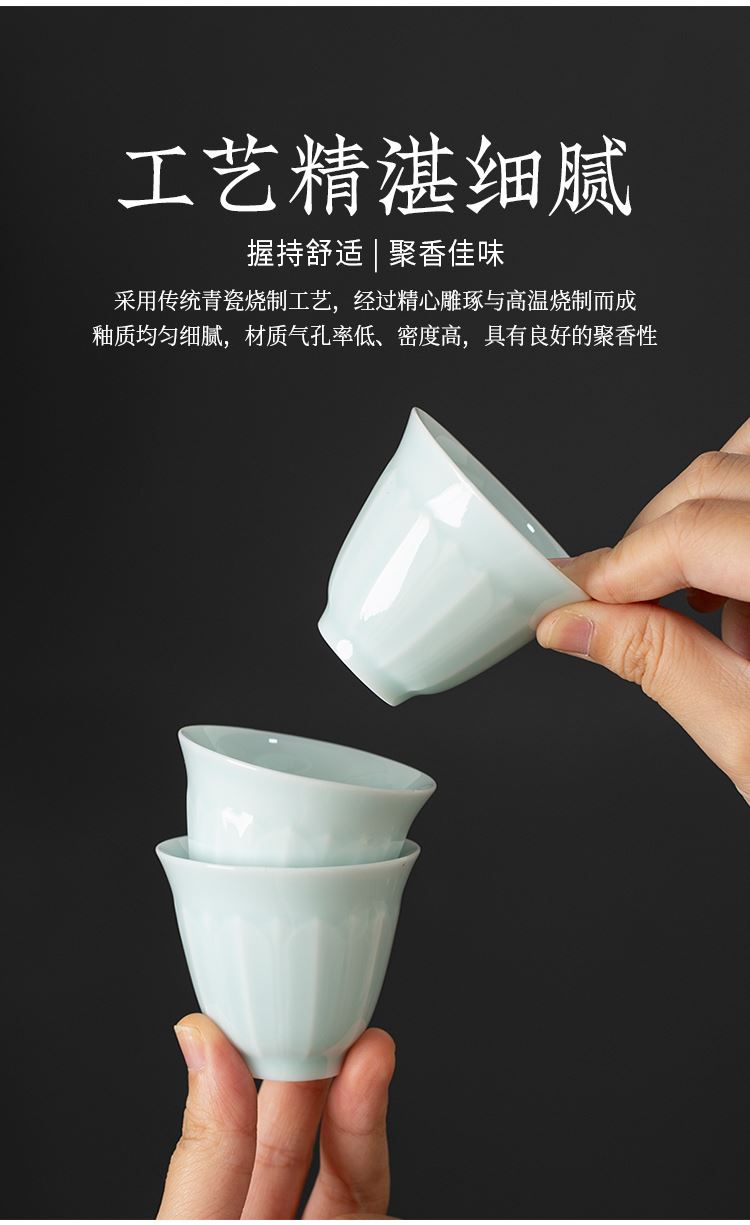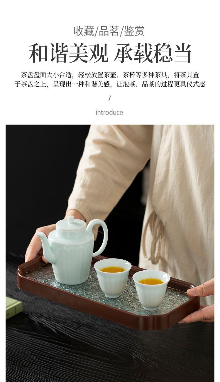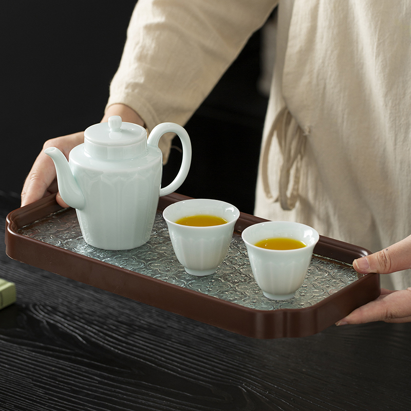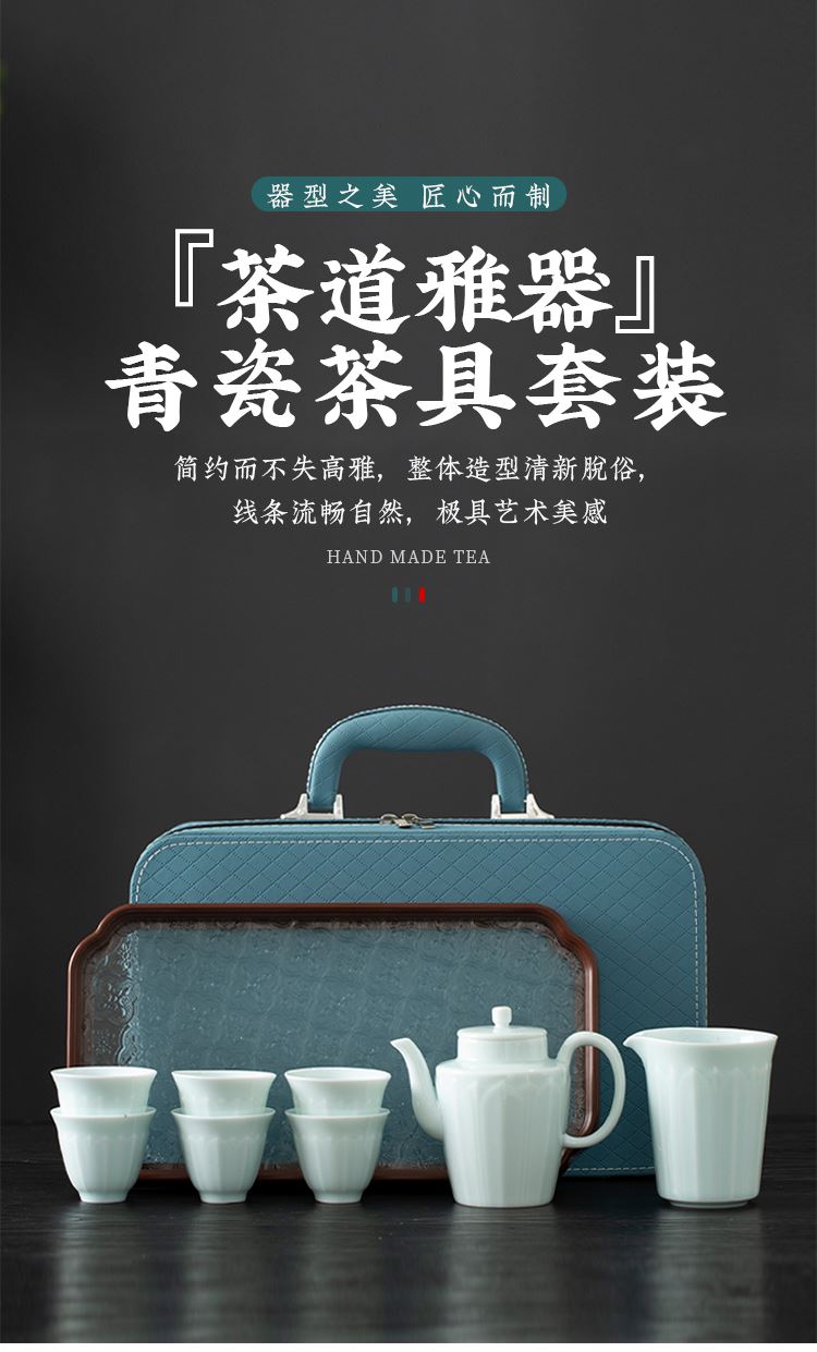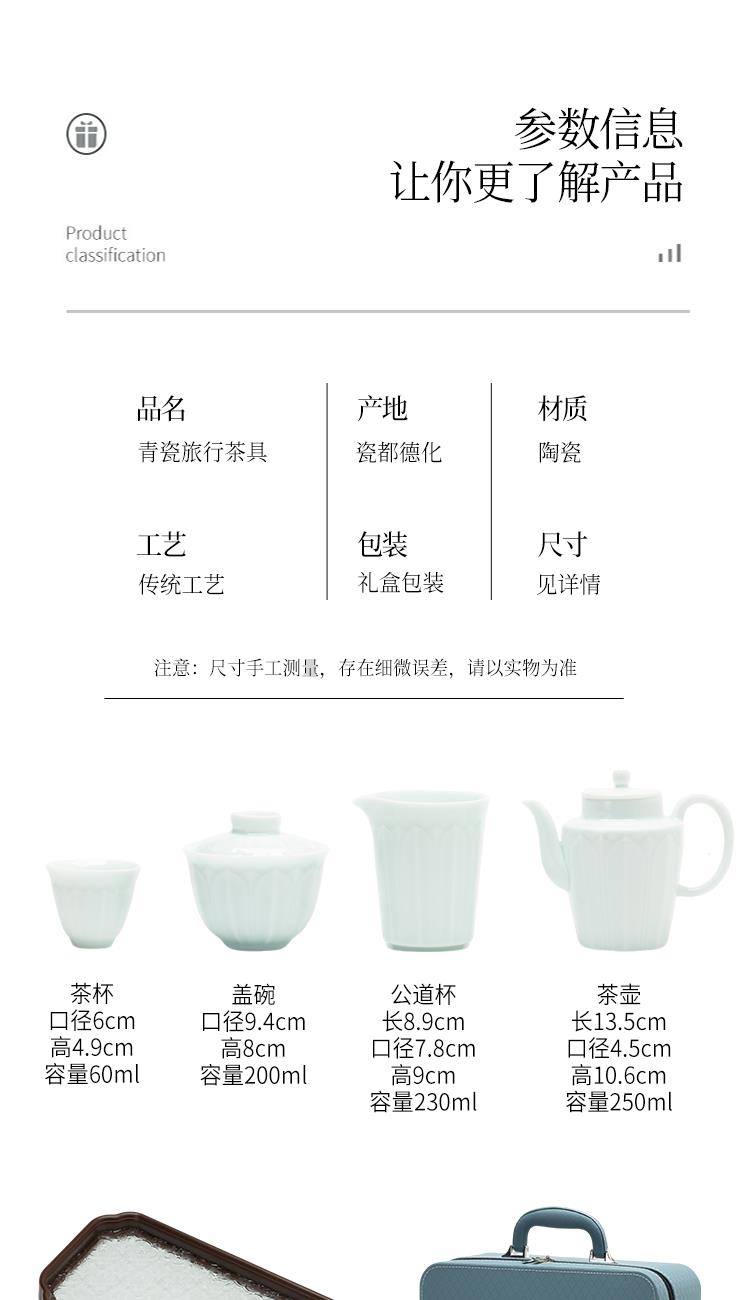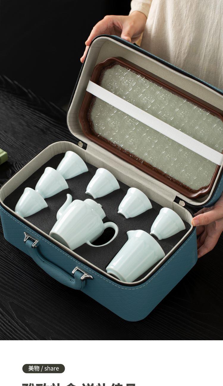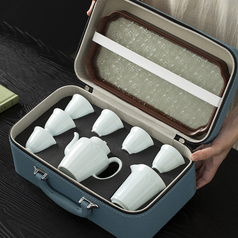 云博陶瓷影青莲花并蒂壶款皮盒旅行茶具套装青瓷中国风浮雕茶具