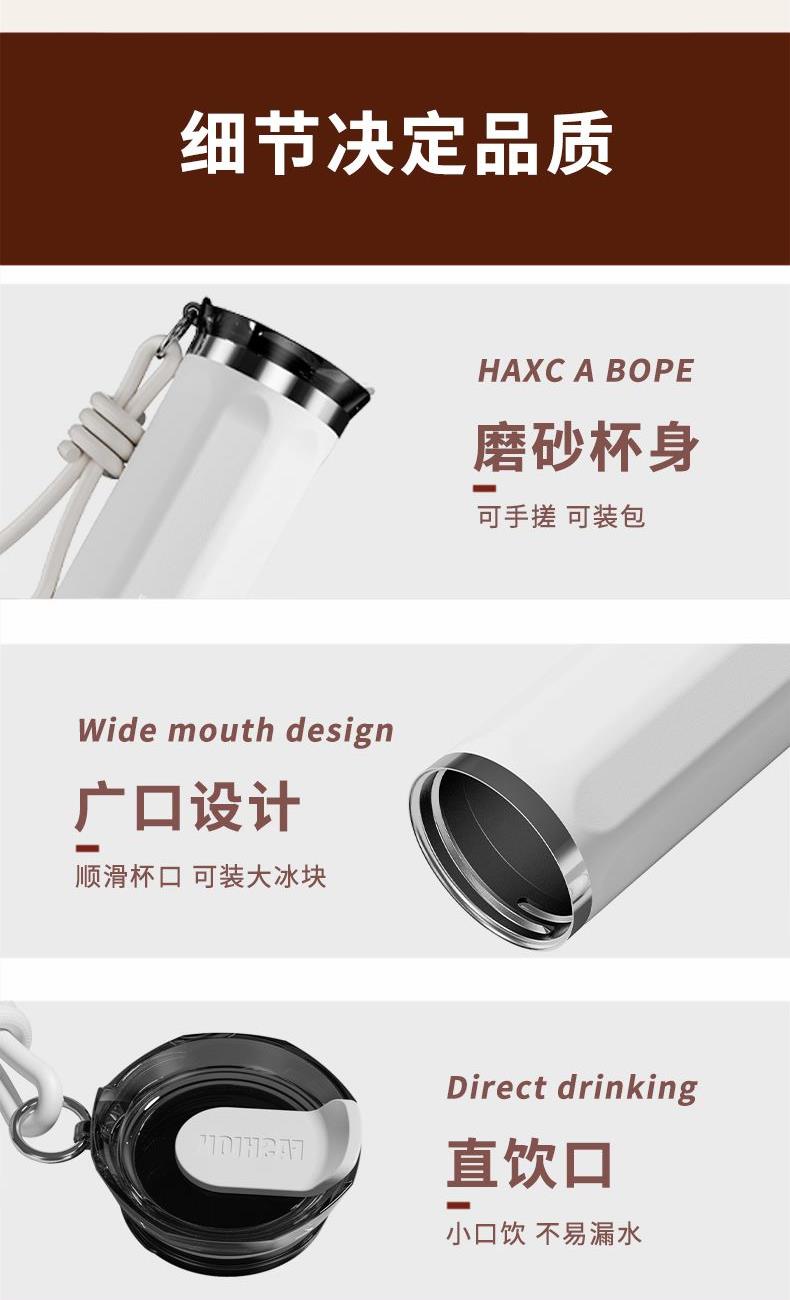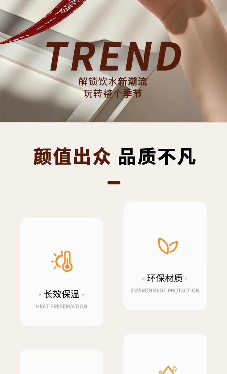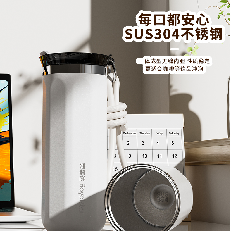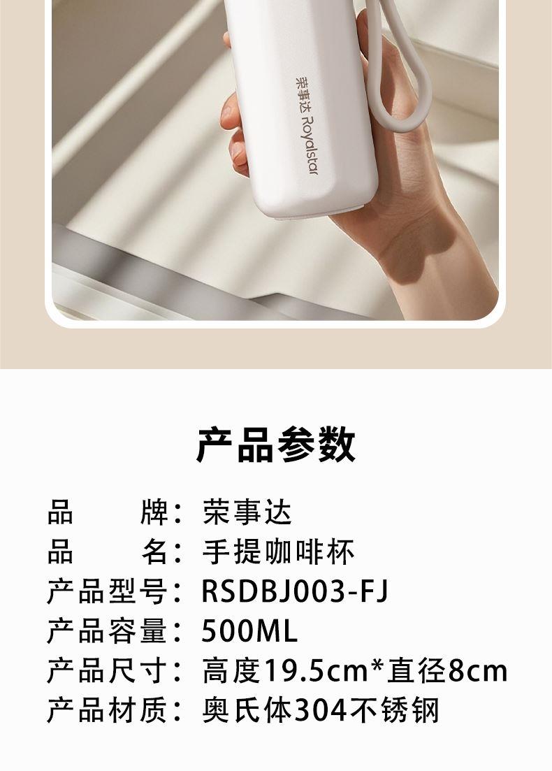 产品型号:RSDBJ003-FJ 产品容量:500ML 产品尺寸:高度19.5cm*直径8cm 产品材质:奥氏体304不锈钢 彩盒尺寸:8.5*8.5*20cm 外箱尺寸:44*44*42cm 采用304不锈钢材质,保温、保冷健康更安全; 盖子食品级PP+食品级硅胶设计,使用更放心; 500ML容量,办公室/出门/咖啡店使用更方便; 杯体罗马柱设计,美观大方; 配有高颜值提手,出门方便,放置美观; 安全更放心;