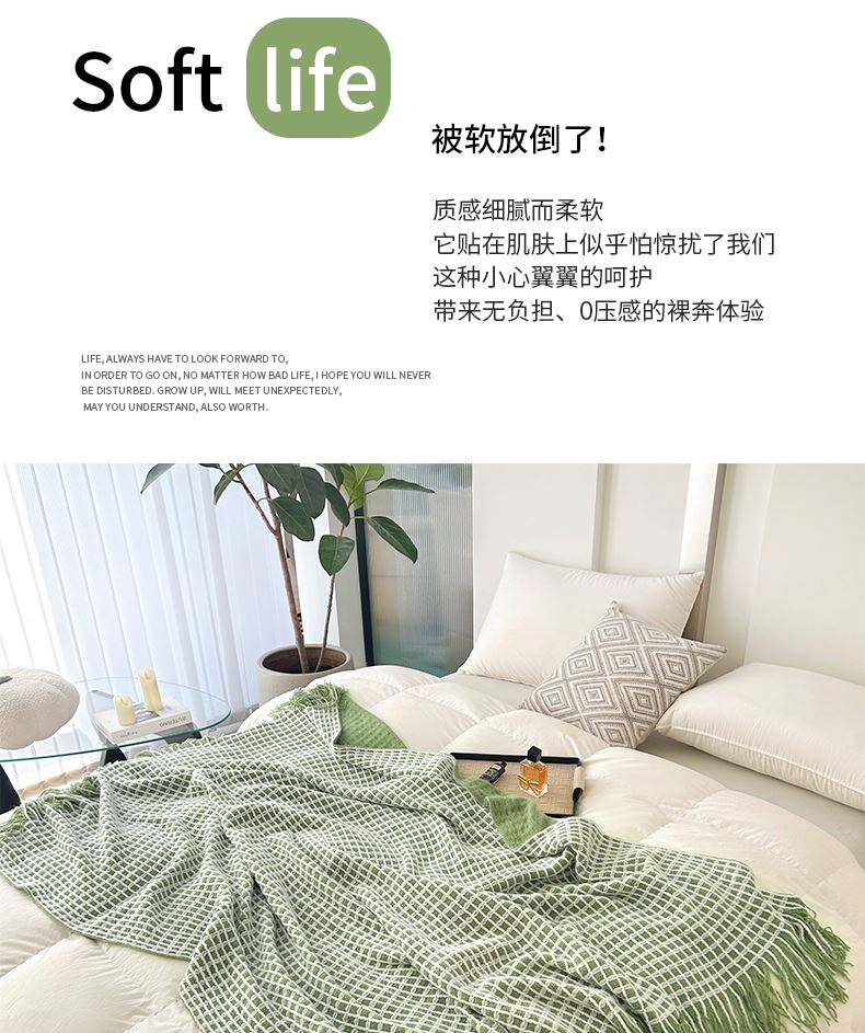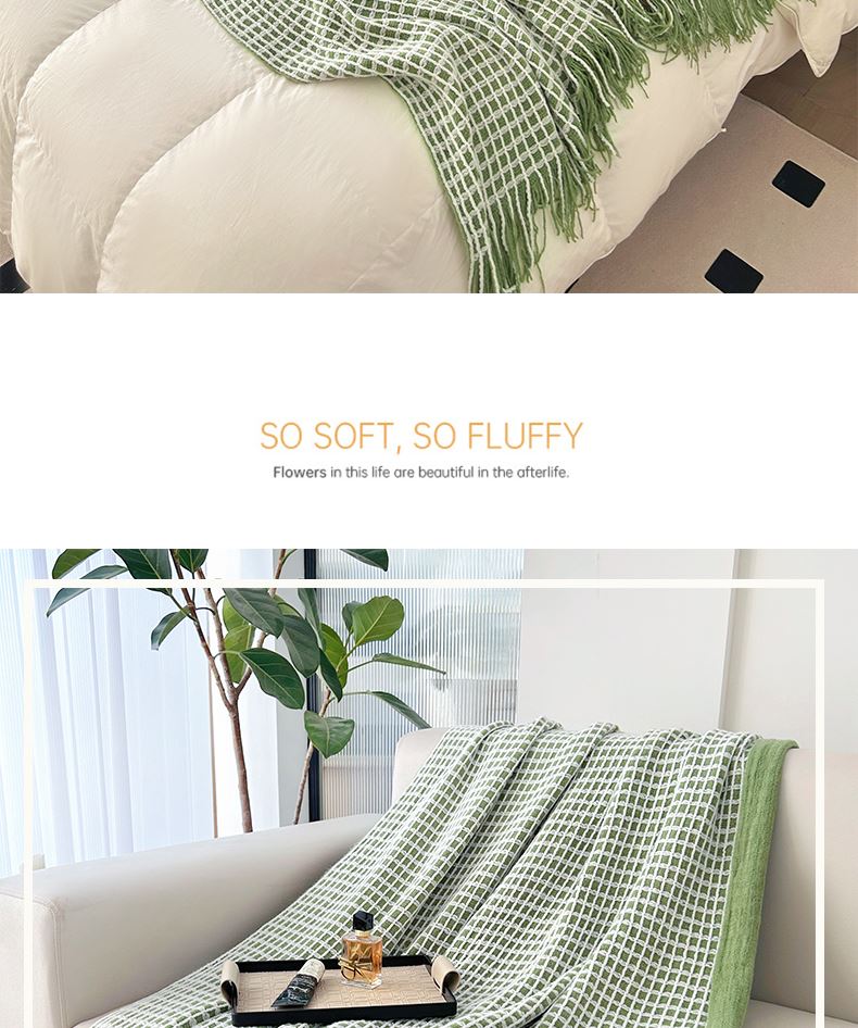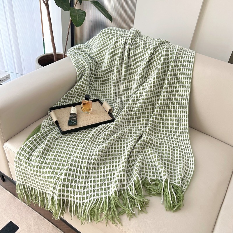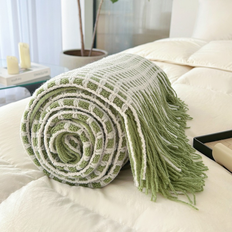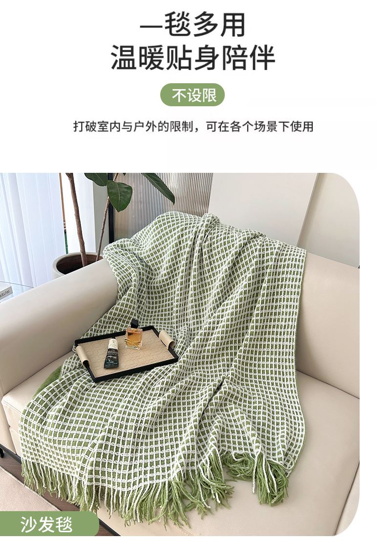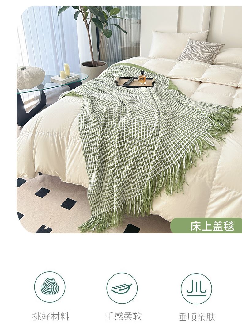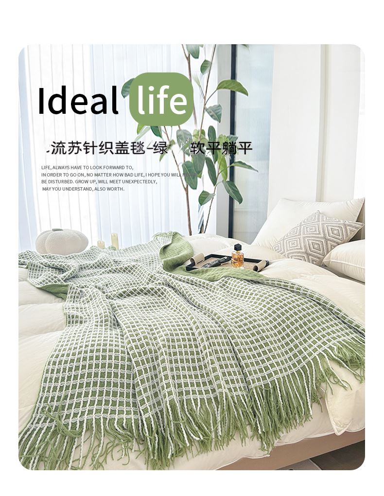 萱遇家纺流苏针织盖毯-绿Q-C7095-1