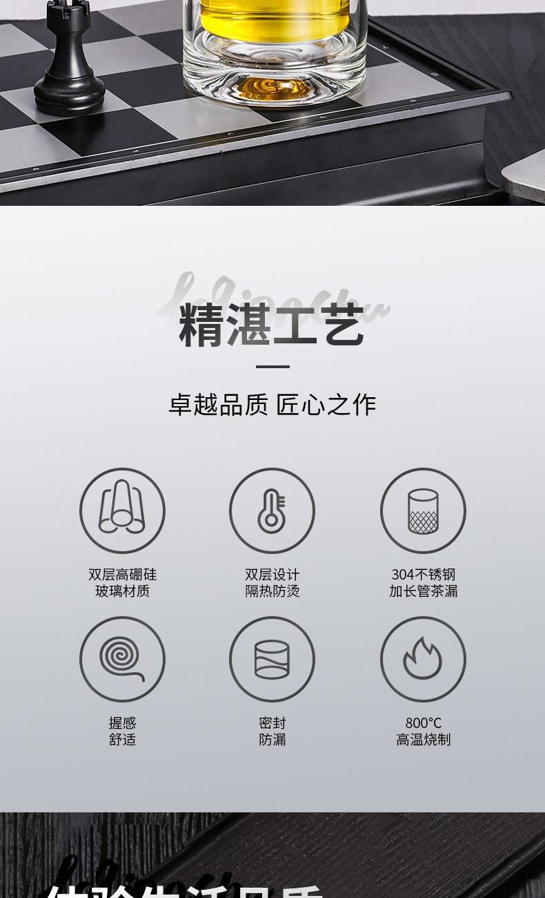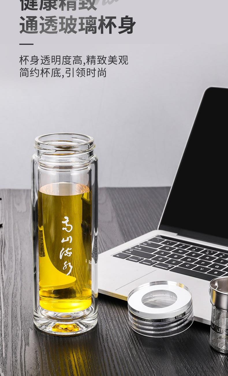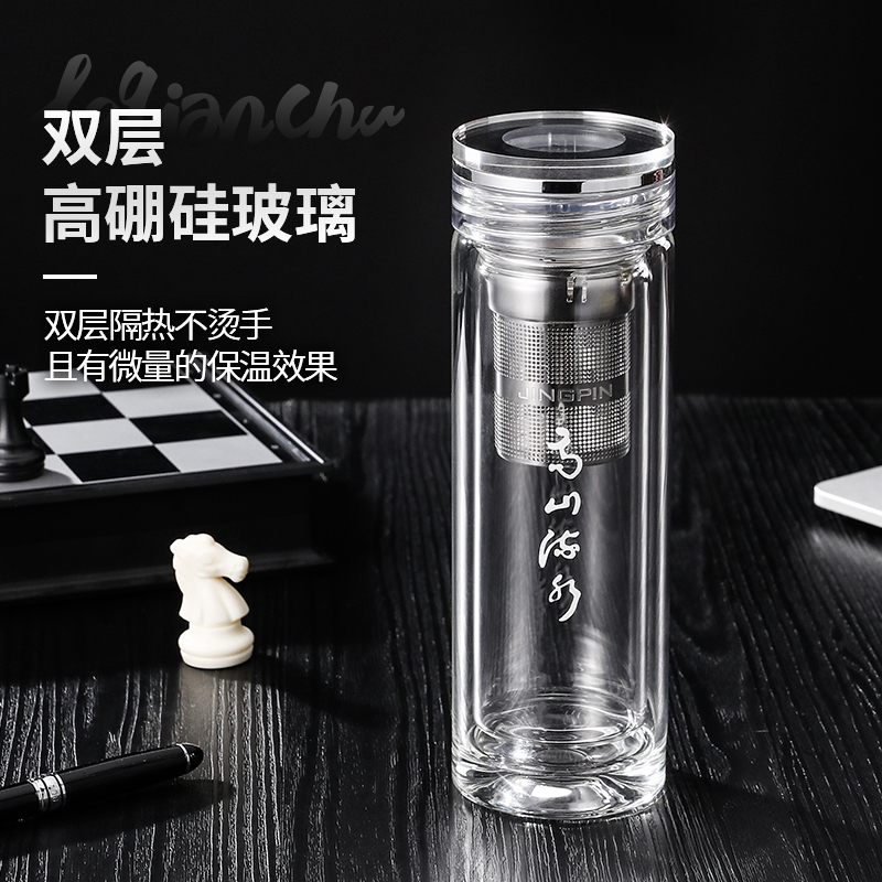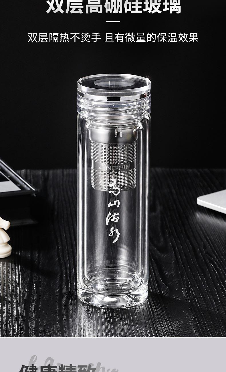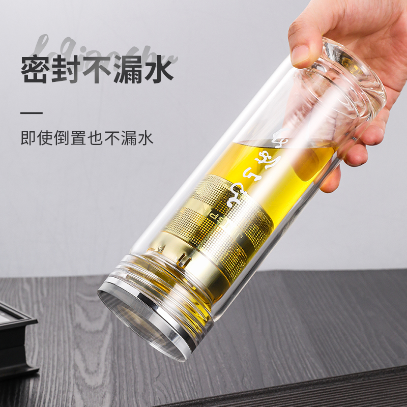 材 质:高硼硅玻璃 容 量:300ml 彩盒尺寸:6.9*6.9*21cm 1. 双层高硼硅玻璃材质,经800℃高温烧制,环保无有害物质,双层设计隔热防烫 2. 304不锈钢边可视盖,可拧开投茶,操作简单便捷 3. 304不锈钢加长管茶漏,轻提即实现茶水分离,茶汤清澈无茶渣