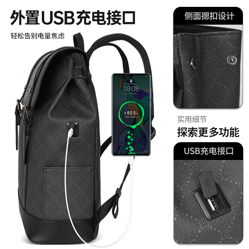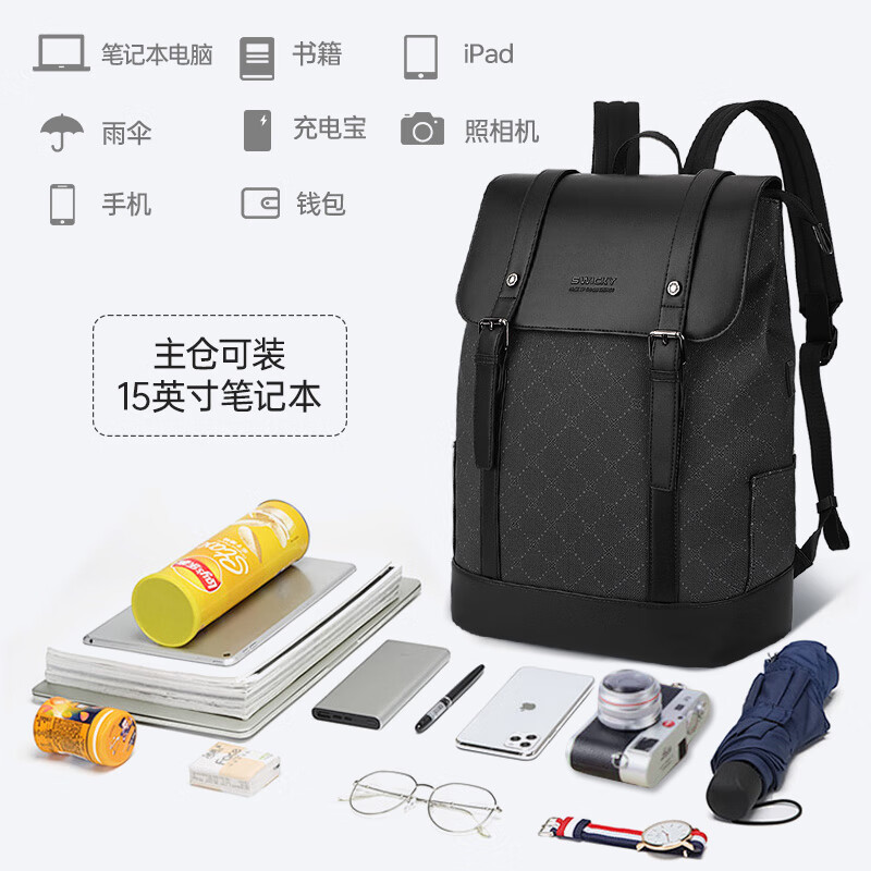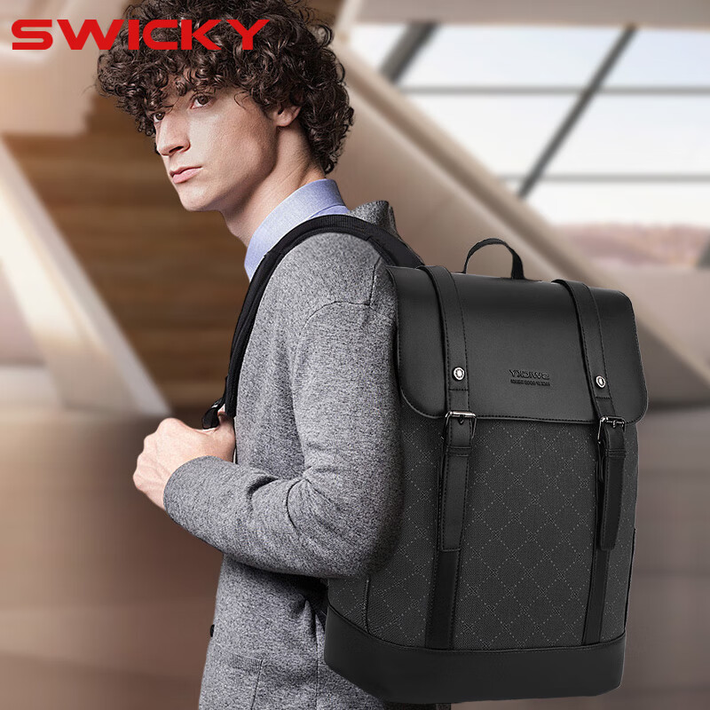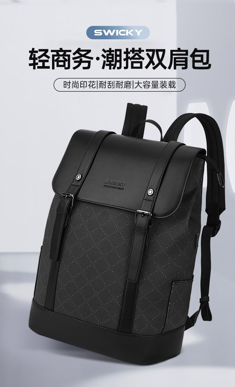 SWICKY简约双肩包大容量轻奢休闲百搭背包88176黑色