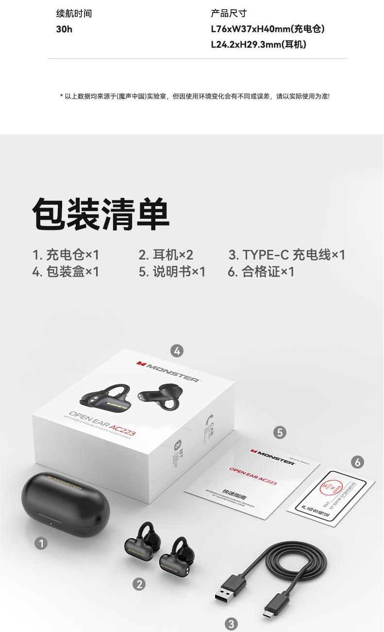 魔声OpenEarAC223蓝牙耳机耳夹式MH22244