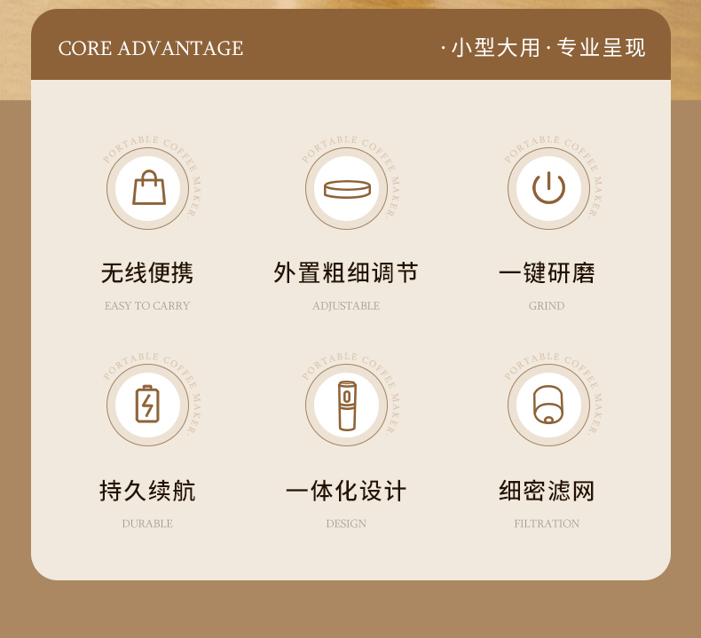 快速研磨高效电机,短时间内完成咖啡豆研磨。