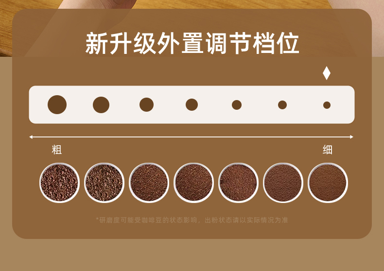7档调节可调研磨粗细,满足不同冲泡方式需求。